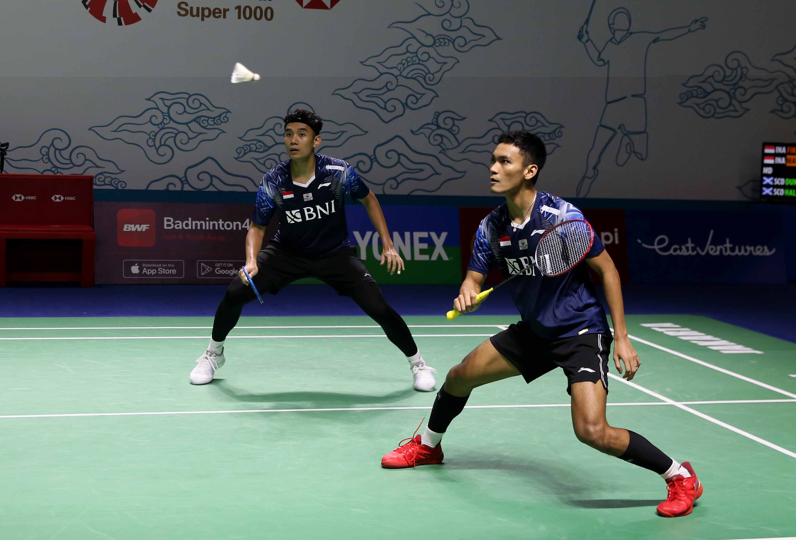 Muhammad Shohibul Fikri/Bagas Maulana (INA) mengalahkan ganda putra Skotlandia, Alexander Dunn/Adam Hall dua gim langsung 21-16 21-16 pada babak pertama gelaran turnamen bulutangkis East Ventures Indonesia Open 2022 di Istora Gelora Bung Karno Senayan, Jakarta, 15 Juni 2022 (Foto : HO/Humas PP PBSI/Erly Bahtiar/Sportsmoment),
