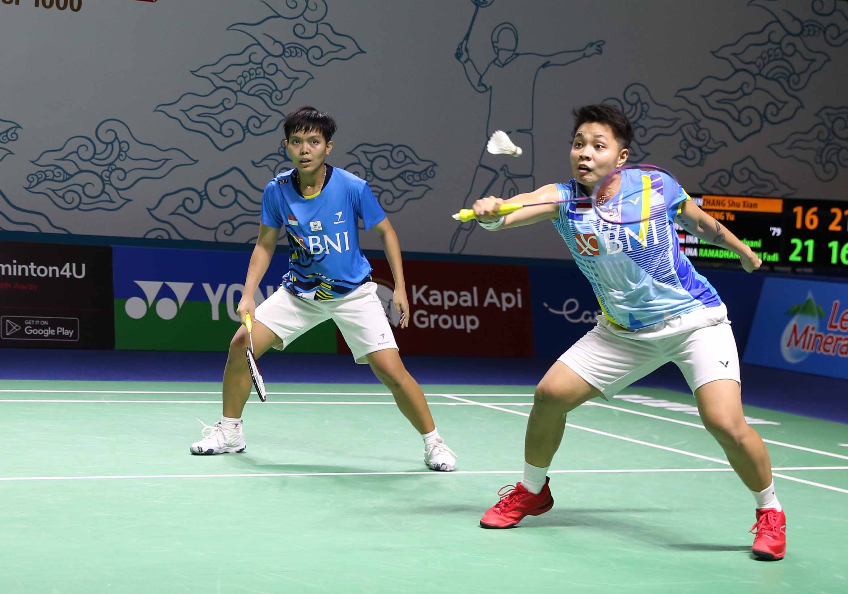 Apriyani Rahayu/Siti Fadia Siti Ramadhanti (INA) mengalahkan ganda putri Tiongkok, Zhang Shu Xian/Zheng Yu melalui pertarungan tiga gim, 21-16, 16-21 dan 21-18 pada babak kedua gelaran turnamen bulutangkis East Ventures Indonesia Open 2022 di Istora Gelora Bung Karno Senayan, Jakarta, 16 Juni 2022 (Foto : HO/Humas PP PBSI/Erly Bahtiar/Sportsmoment),
