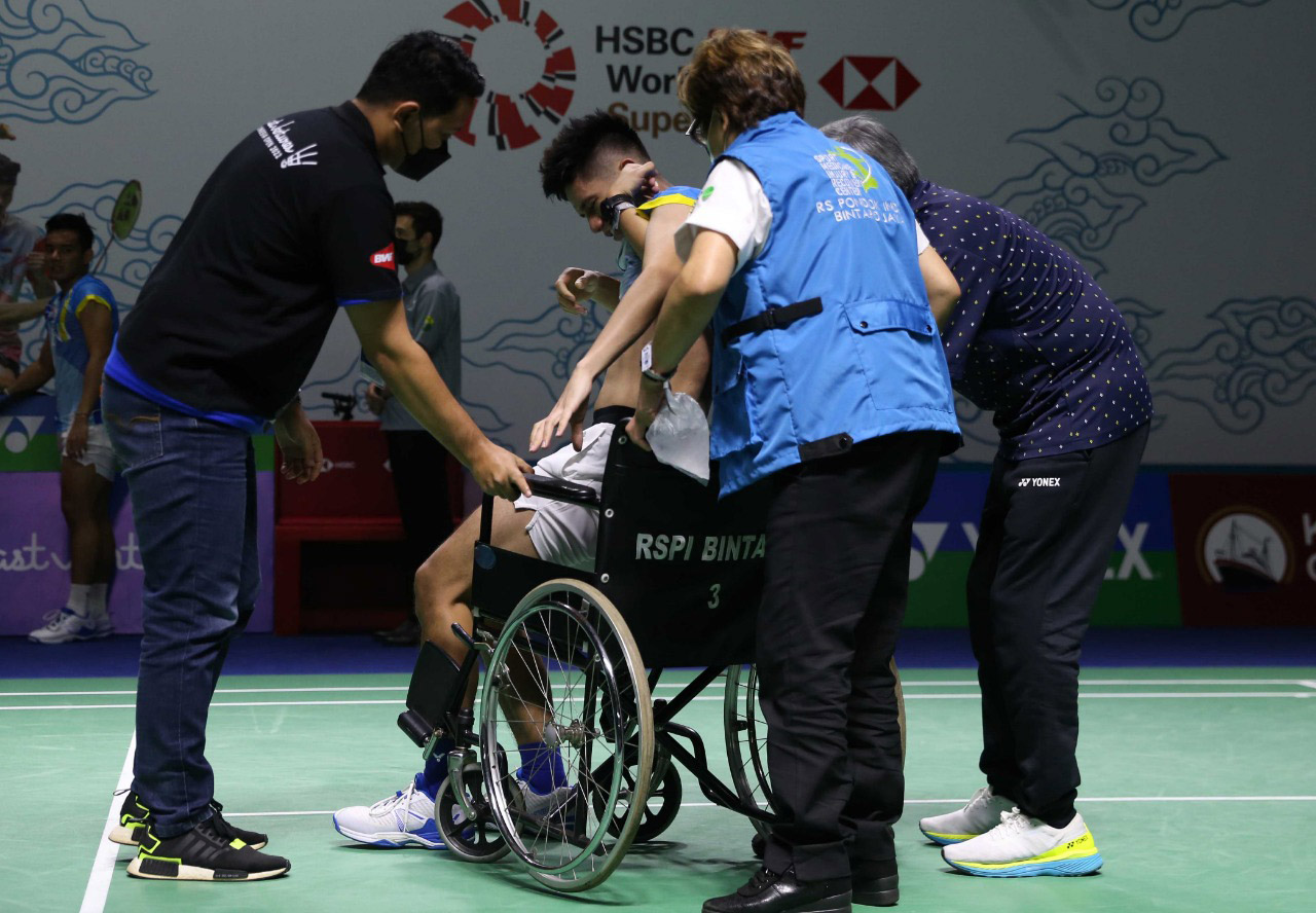 Pramudya Kusumawardana/Yeremia Erich Yoche Yacob Rambitan (INA) dikalahkan ganda putra Malaysia, Aaron Chia/Soh Wooi Yik melalui pertarungan tiga gim, 21-14, 12-21 dan 20-22 pada babak perempatfinal gelaran turnamen bulutangkis East Ventures Indonesia Open 2022 di Istora Gelora Bung Karno Senayan, Jakarta, 17 Juni 2022 (Foto : HO/Humas PP PBSI/Erly Bahtiar/Sportsmoment)