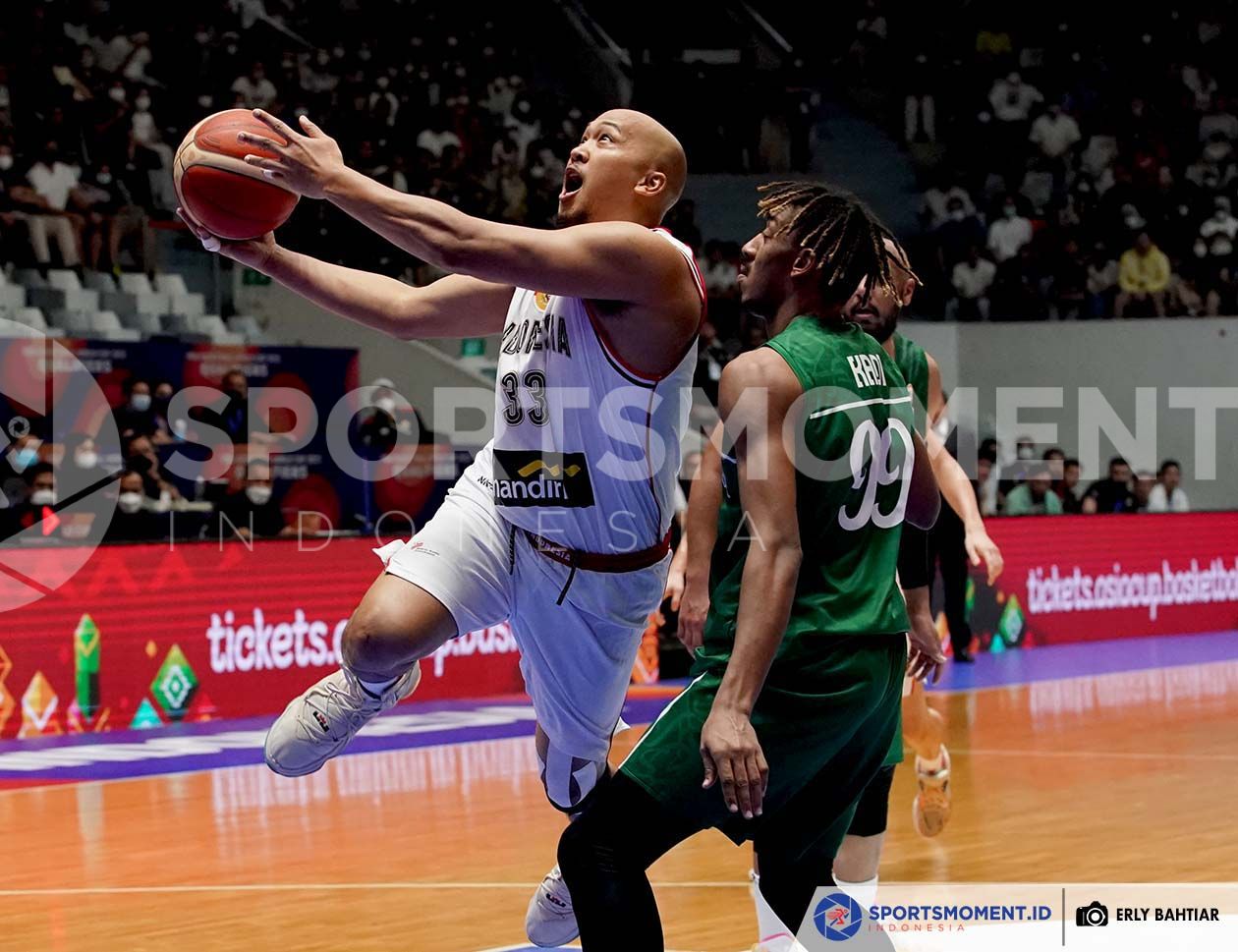 Arki Dikania Wisnu (33) pebasket Tim Nasional (Timnas) saat melawan Arab Saudi di Kualifikasi FIBA World Cup 2023 yang berlangsung, Jumat (1/7/2022) malam WIB di Istora Senayan Jakarta. Bermain di hadapan pendukung sendiri, Timnas Basket Indonesia tumbang dengan skor tipis 67-69 dari Arab Saudi.