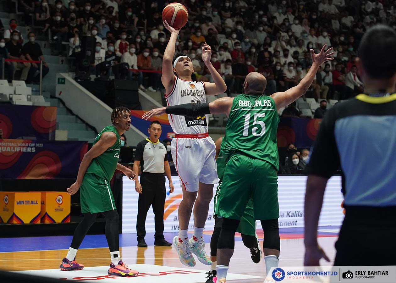 Agassi Yeshe (24) pebasket Tim Nasional (Timnas) saat melawan Arab Saudi di Kualifikasi FIBA World Cup 2023 yang berlangsung, Jumat (1/7/2022) malam WIB di Istora Senayan Jakarta. Bermain di hadapan pendukung sendiri, Timnas Basket Indonesia tumbang dengan skor tipis 67-69 dari Arab Saudi.