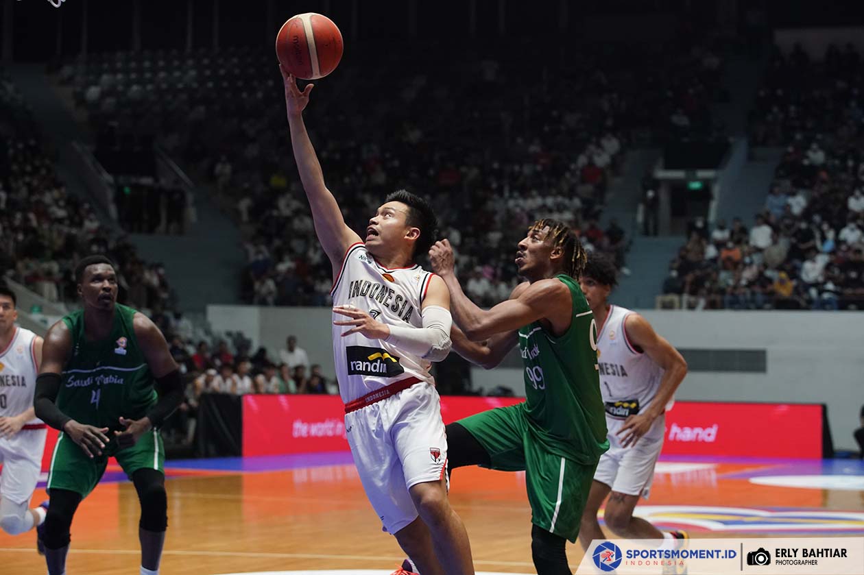 Andakara Prastawa Dhyaksa [7] pebasket Tim Nasional (Timnas) saat melawan Arab Saudi di Kualifikasi FIBA World Cup 2023 yang berlangsung, Jumat (1/7/2022) malam WIB di Istora Senayan Jakarta. Bermain di hadapan pendukung sendiri, Timnas Basket Indonesia tumbang dengan skor tipis 67-69 dari Arab Saudi.