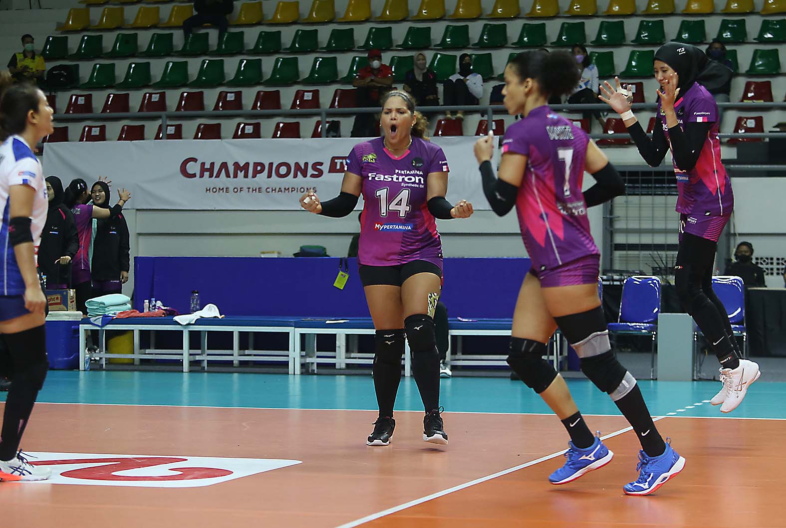 Jakarta Pertamina Fastron berhasil mengalahkan Jakarta Mandiri Popsivo Polwan dengan skor 3-1 (19-25, 25-18, 25-14, dan 25-19) dalam pertandingan Proliga 2022 pekan kedua putaran pertama, di Padepokan Voli Jenderal Polisi Kunarto, Sentul, Bogor, Jumat, 14 Januari 2022. (Foto : Erly Bahtiar/Sportsmoment.id)
