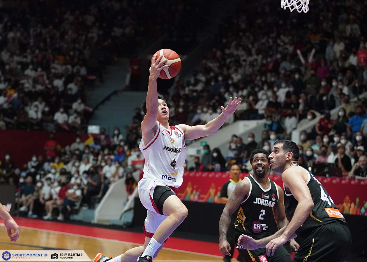 Abraham Damar Grahita beraksi saat timnas basket Indonesia melewan Yordania pada laga kedua Grup A FIBA Asia Cup 2022. Pertandingan yang berlangsung di Istora Senayan Jakarta pada Kamis (14/7/2022) tersebut, Indonesia kalah dengan skor 65-74. (Foto: Sportsmoment.id/Erly Bahtiar)
