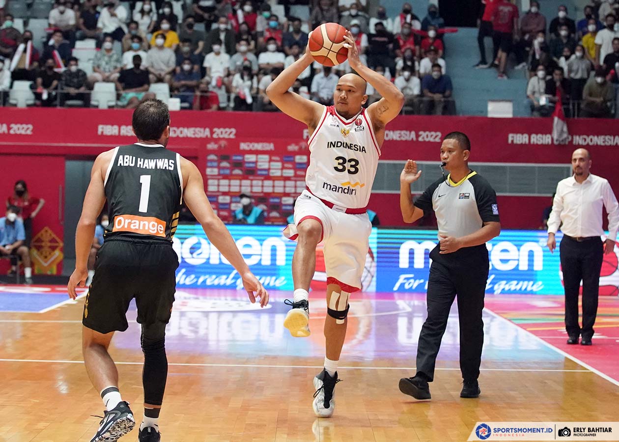 Arki Dikania Wisnu beraksi saat timnas basket Indonesia melewan Yordania pada laga kedua Grup A FIBA Asia Cup 2022. Pertandingan yang berlangsung di Istora Senayan Jakarta pada Kamis (14/7/2022) tersebut, Indonesia kalah dengan skor 65-74. (Foto: Sportsmoment.id/Erly Bahtiar)