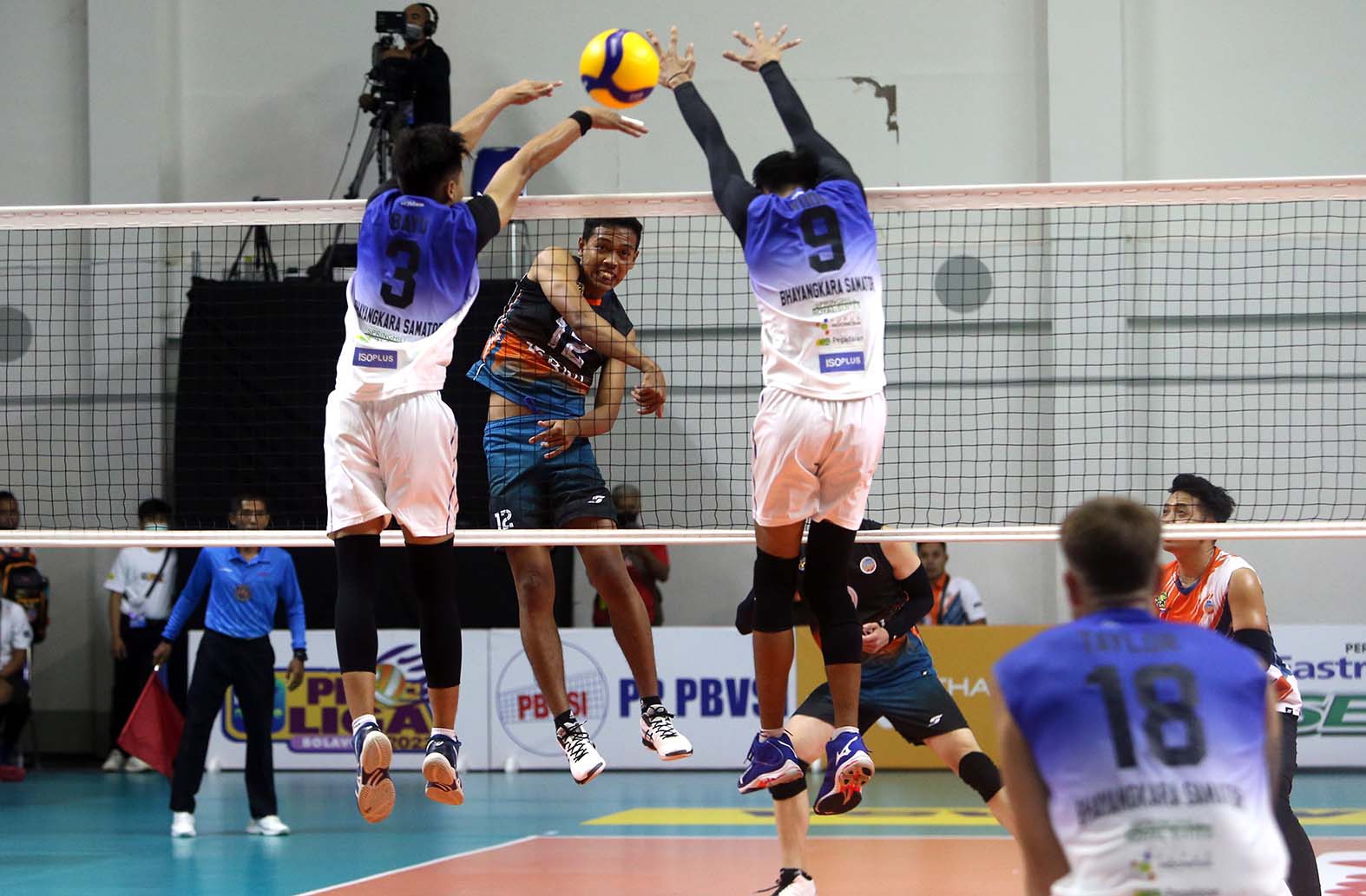 Tim bola voli putra Jakarta BNI 46 menang atas Surabaya Bhayangkara Samator dalam gelaran Proliga 2022 putaran pertama Jumat (14/1/2022) dengan skor 3-2. (32-30, 31-33, 25-20, 24-26, dan 17-15) di GOR Padepokan Voli Jenderal Polisi, Sentul, Bogor. (Foto : Erly Bahtiar/Sportsmoment.id)