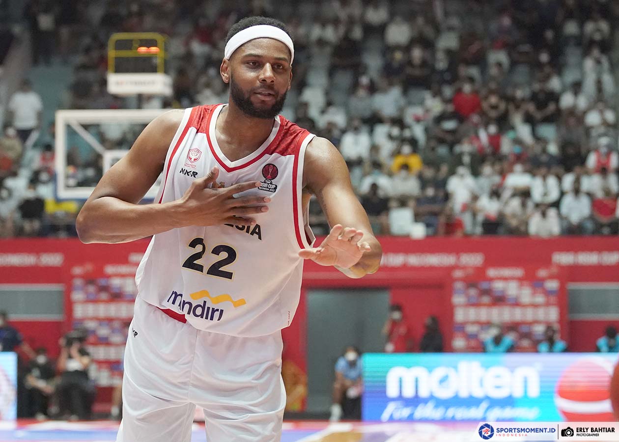 Marques Terrell Bolden beraksi saat timnas basket Indonesia melewan Yordania pada laga kedua Grup A FIBA Asia Cup 2022. Pertandingan yang berlangsung di Istora Senayan Jakarta pada Kamis (14/7/2022) tersebut, Indonesia kalah dengan skor 65-74. (Foto: Sportsmoment.id/Erly Bahtiar)