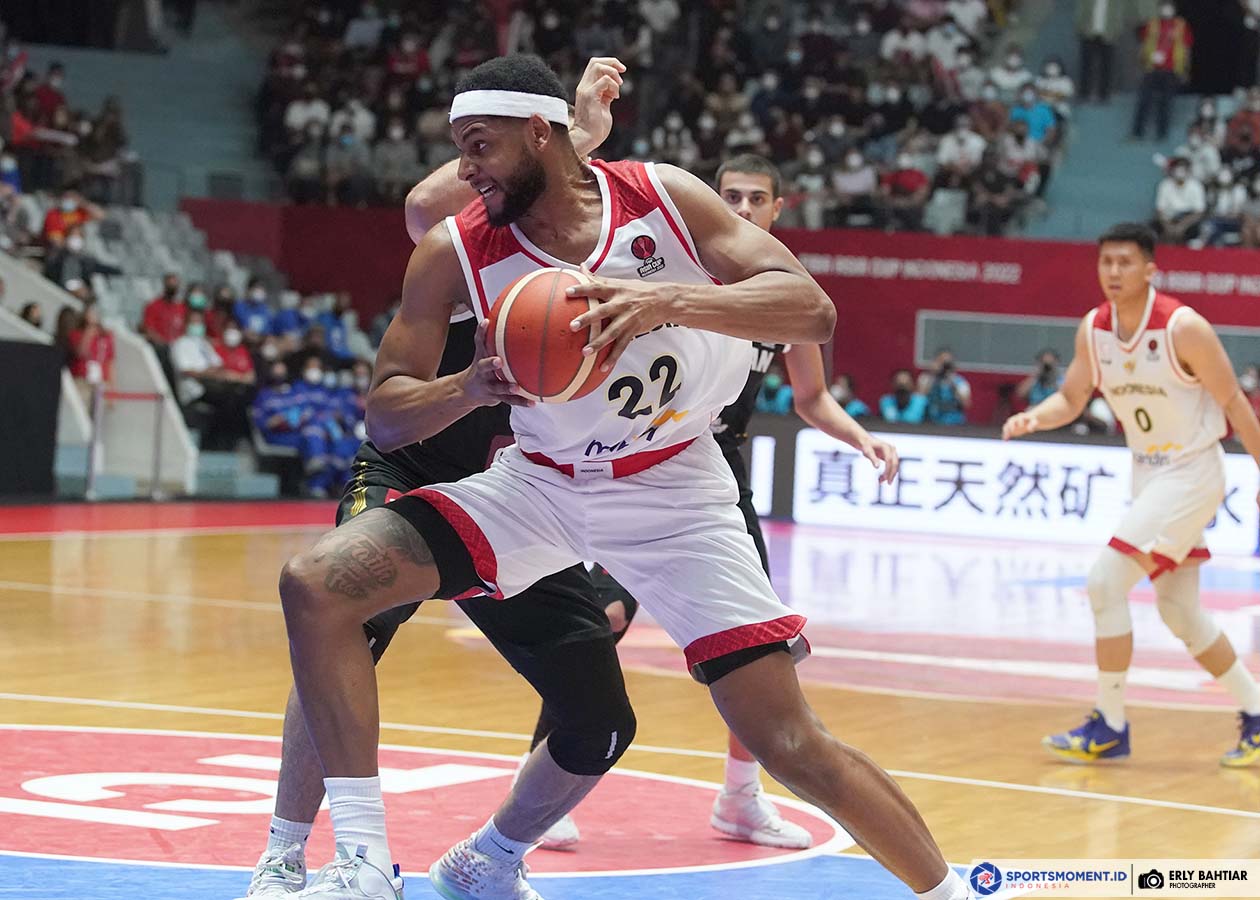 Marques Terrell Bolden beraksi saat timnas basket Indonesia melewan Yordania pada laga kedua Grup A FIBA Asia Cup 2022. Pertandingan yang berlangsung di Istora Senayan Jakarta pada Kamis (14/7/2022) tersebut, Indonesia kalah dengan skor 65-74. (Foto: Sportsmoment.id/Erly Bahtiar)