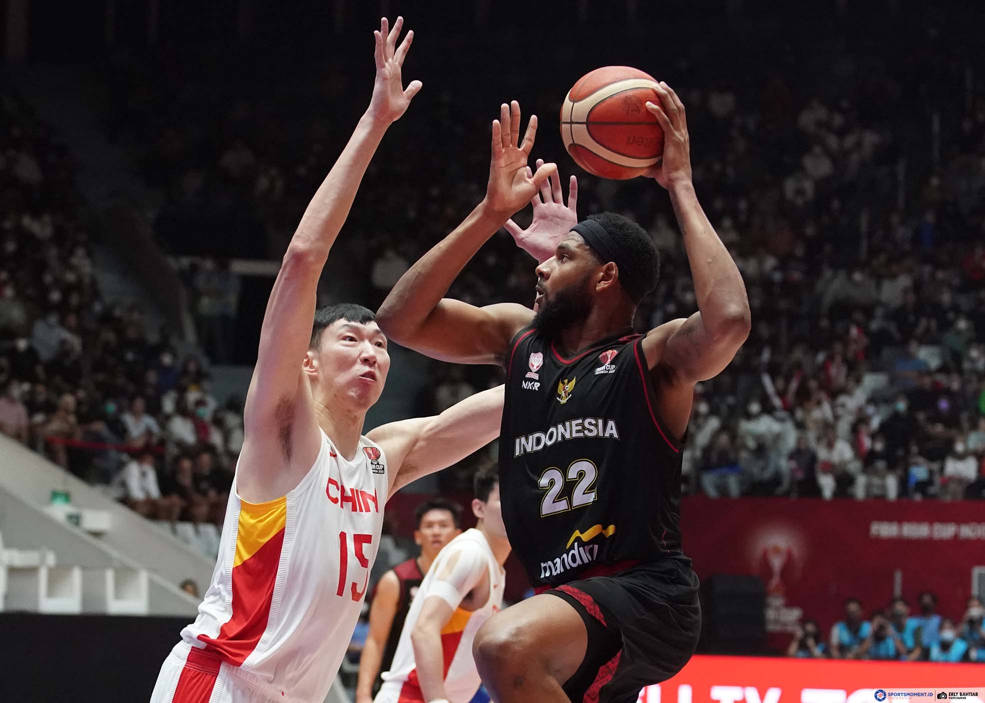 Marques Terrell Bolden beraksi saat timnas basket Indonesia melewan China pada laga kedua Grup A FIBA Asia Cup 2022. Pertandingan yang berlangsung di Istora Senayan Jakarta pada Kamis (14/7/2022) tersebut, Indonesia kalah dengan skor 58-108. (Foto: Sportsmoment.id/Erly Bahtiar)
