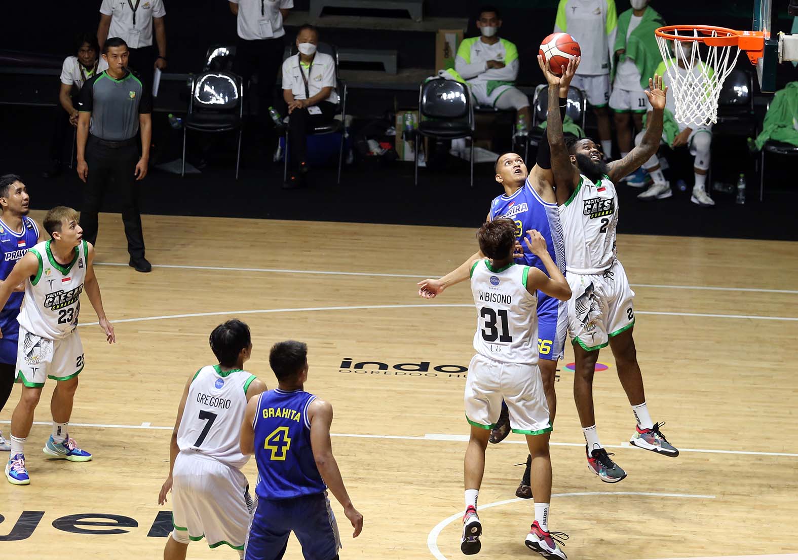 Prawira Bandung berhasil mengalahkan Pacific Caesar Surabaya dengan skor 71-54 pada pertandingan tokopedia Indonesia Basketball League 2022 putaran pertama, di Hall Basket Senayan, Sabtu, 15 Januari 2022. (Foto : Erly Bahtiar/Sportsmoment.id)