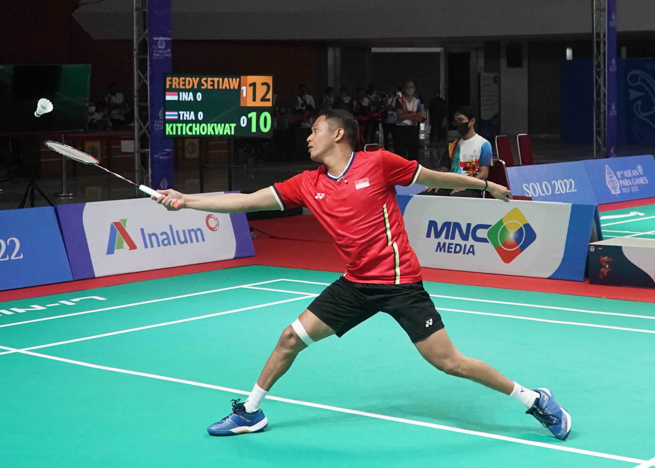 Fredy Setiawan (S14) tunggal pertama putra Indonesia dalam aksinya saat Indonesia meraih medali Emas pada 11th ASEAN Para Games 2022 di UTP Sport Center Solo, Jawa Tengah, Sabtu 30 Juli 2022. Foto : HO/INASPOC/Sportsmoment/Erly Bahtiar