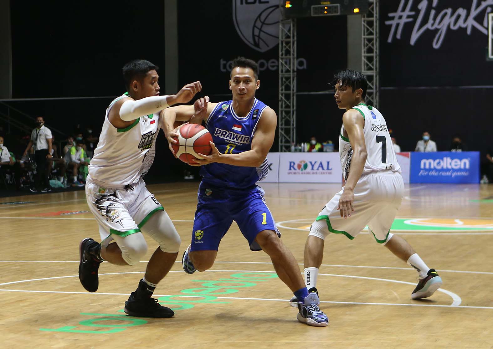 Prawira Bandung berhasil mengalahkan Pacific Caesar Surabaya dengan skor 71-54 pada pertandingan tokopedia Indonesia Basketball League 2022 putaran pertama, di Hall Basket Senayan, Sabtu, 15 Januari 2022. (Foto : Erly Bahtiar/Sportsmoment.id)