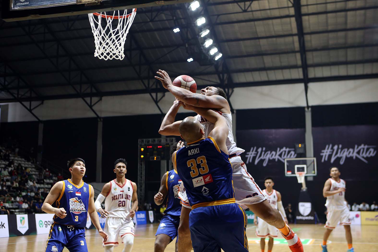 Pelita Jaya Bakrie Jakarta sukses melakukan revans terhadap Satria Muda Pertamina Jakarta atas kekalahan mereka di Final IBL 2021. Pada hari pertama IBL 2022 Sabtu (15/1/2022), Pelita Jaya menang 69-65 di Hall Basket Gelora Bung Karno (GBK), Senayan, Jakarta. (Foto : Erly Bahtiar/Sportsmoment.id)