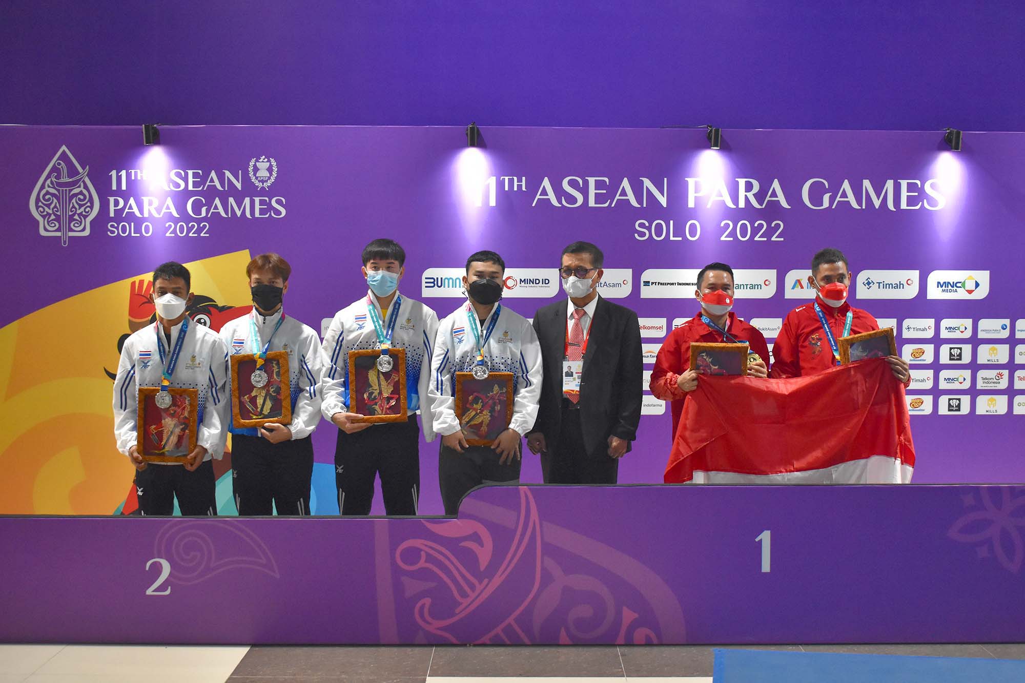 Perolehan medali emas oleh team Indonesia Dian David Mickael Jacobs dan Komet Akbar dalam cabor tenis meja class Men Team-TT 10 hari ke tiga, Senin, 1 Agustus 2022 11th Asean Para Games Solo 2022 di Solo Techno Park. Foto : HO/INASPOC/Sportsmoment/Wibowo Rahardjo