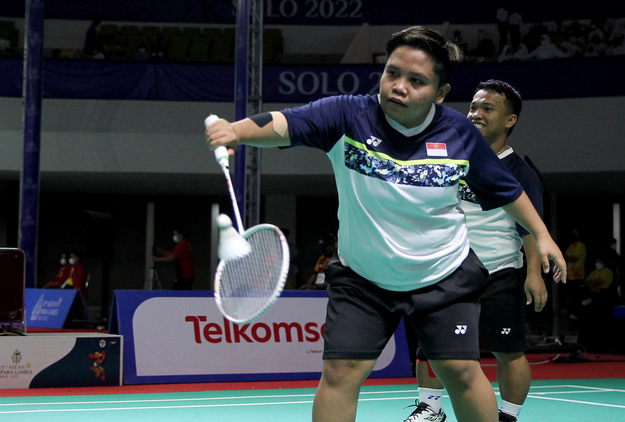 Pebulutangkis Indonesia Rina Marlina (kiri) dan Subhan (kanan) dalam aksinya saat pertandingan di nomer Ganda Campuran pada 11th ASEAN PARAGAMES 2022 di Auditorium Universitas Muhammadyah Surakarta, Solo, Selasa, 2/08/2022. Foto : HO/INASPOC/Sportsmoment/Ardy Alvez