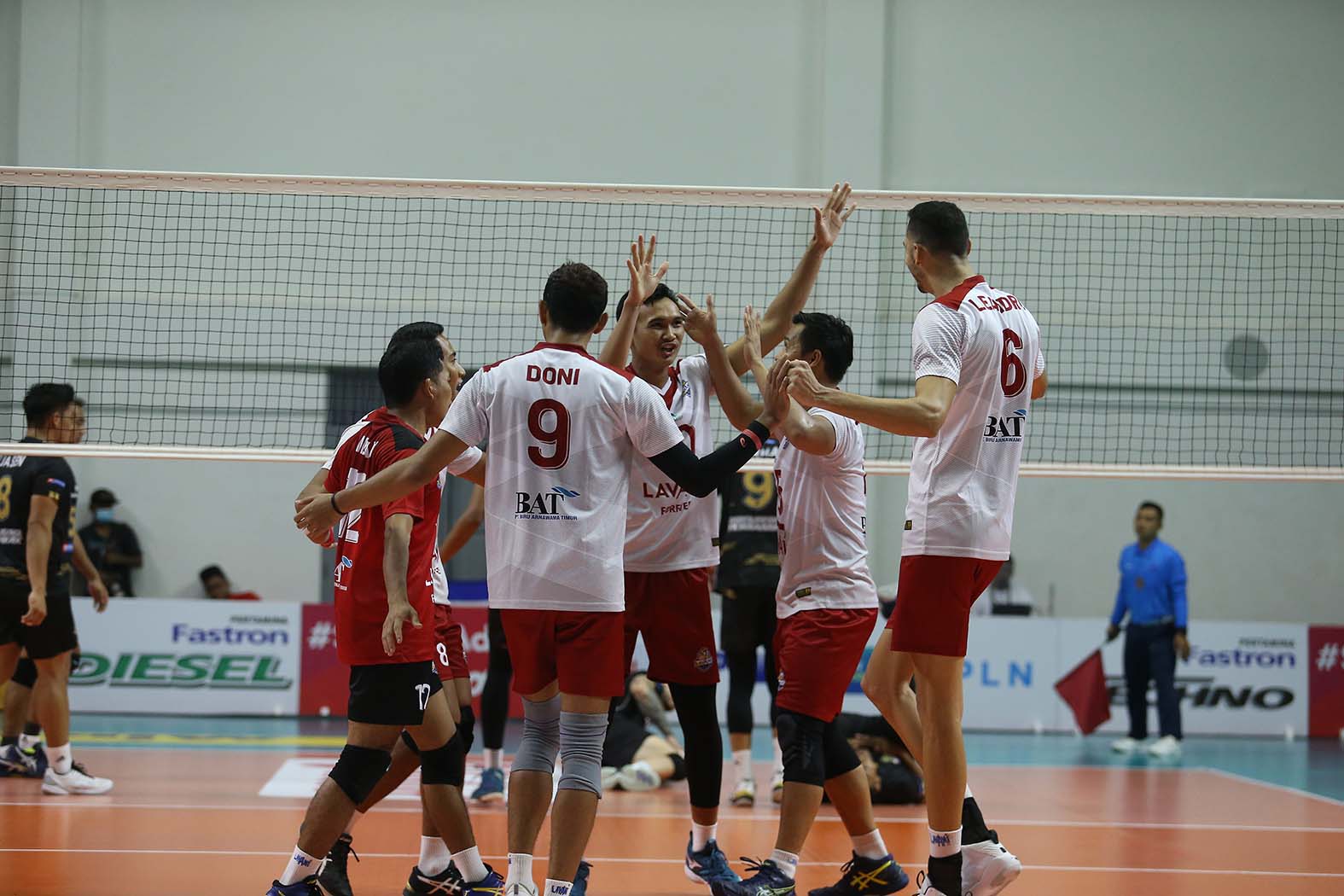 Tim bola voli putra Jakarta Pertamina Pertamax berhasil menang atas Bogor Lavani dengan skor 3-1. Pertandingan Proliga 2022 putaran pertama yang berlangsung di GOR Padepokan Voli Jenderal Polisi Kunarto, Sentul, Minggu (16/1/2022). (Foto : Erly Bahtiar/Sportsmoment.id)