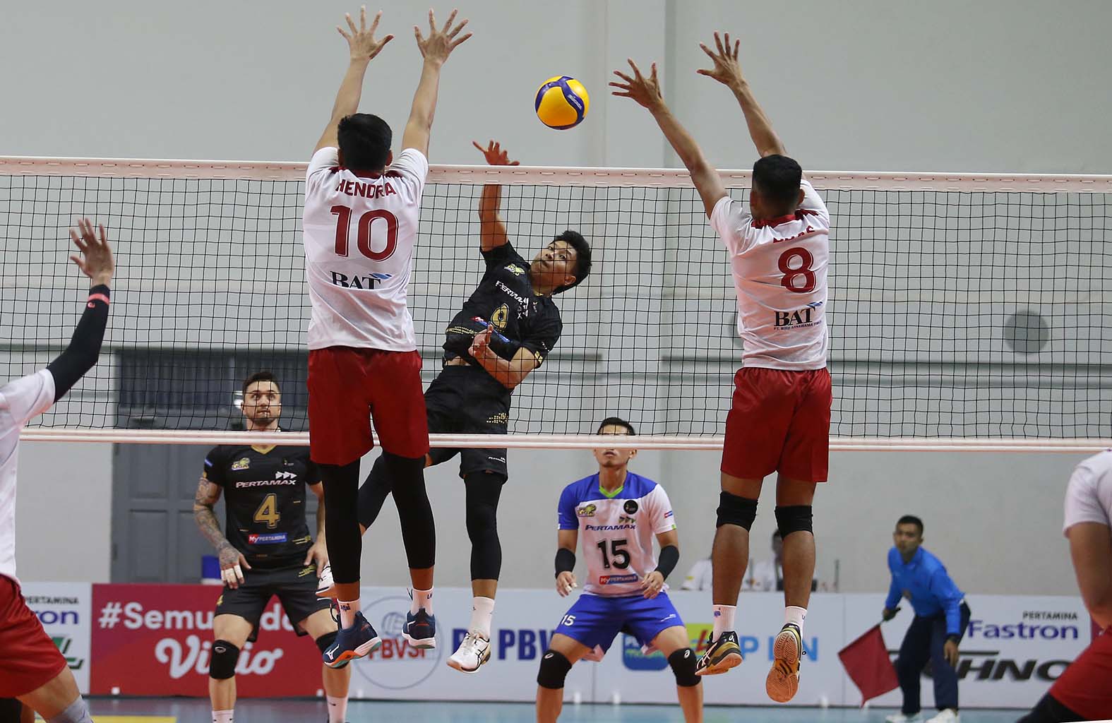 Jakarta Pertamina Pertamax berhasil menang atas Bogor Lavani dengan skor 3-1. Pertandingan Proliga 2022 putaran pertama yang berlangsung di GOR Padepokan Voli Jenderal Polisi Kunarto, Sentul, Minggu (16/1/2022). (Foto : Erly Bahtiar/Sportsmoment.id)
