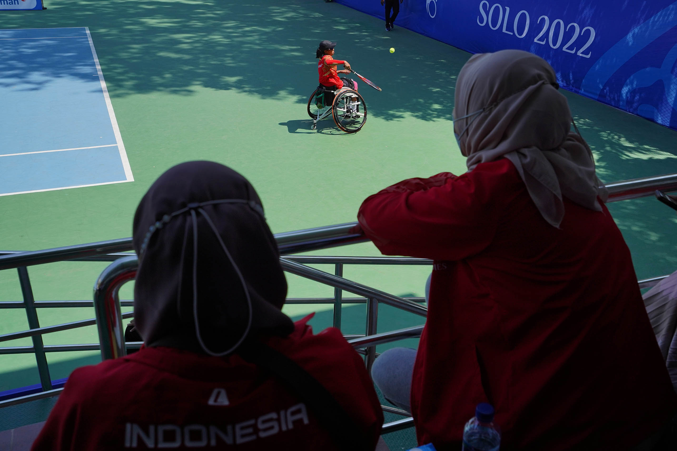 Pendukung setia atlet Wheelchair Tennis andalan Indoneisa Ndaru Padma Putri,saat berlaga melawan Sakom Khantasit asal Thailand di Manahan Tennis Center Surakarta, (04/08/2022). Dalam pertandingan itu Ndaru Padma Putri harus puas di runner up dan mendapatkan medali perak. Foto : HO/INASPOC/Sportsmoment/Tandur Rimoro