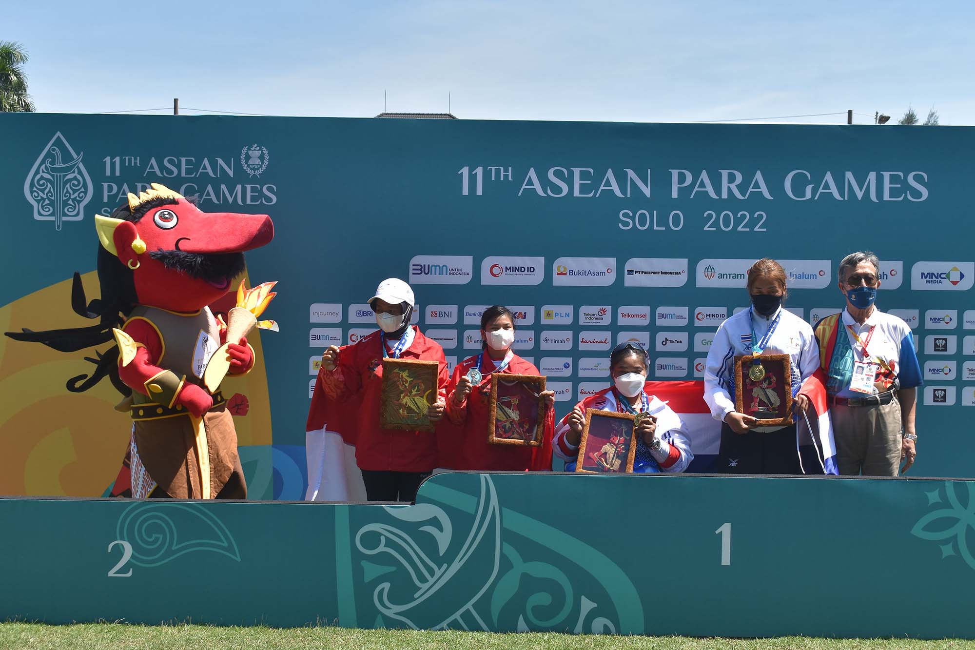 Penerimaan Medali Perak pasangan Indonesia Irma Yunita-Tuwariyah Compound Women Open Doubles Para Archery 11th Asean Para Games Solo 2022 di Stadion Kota Barat Surakarta, Jumat 5 Agustus 2022. Foto : HO/INASPOC/Sportsmoment/Wibowo Rahardjo