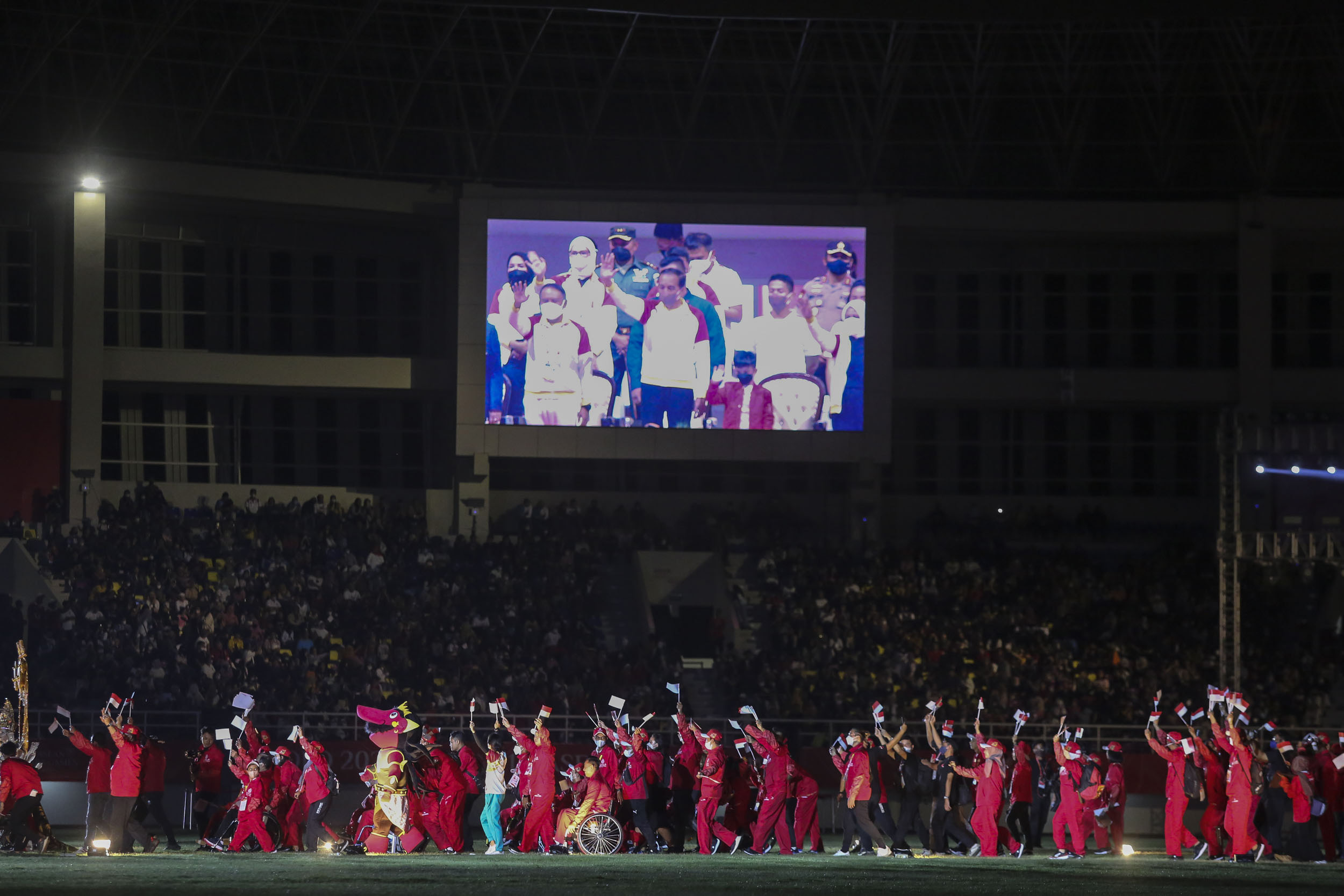 Sejumlah atlet Indonesia mengikuti defile saat upacara penutupan 11th Asean Para Games 2022 di Stadion Manahan, Solo, Jawa Tengah, Sabtu, 06 Agustus 2022. Foto : HO/INASPOC/Sportsmoment/Agoes Rudianto