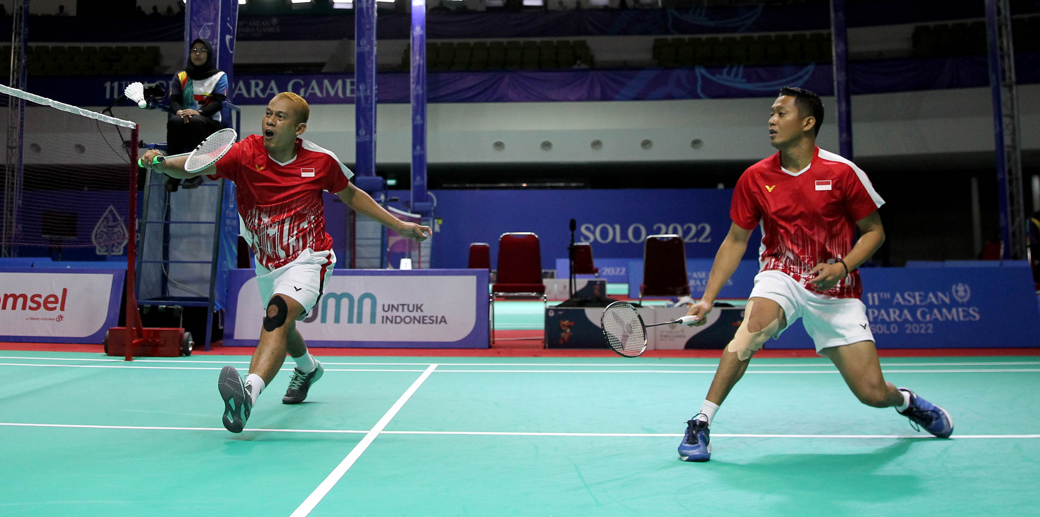 Pebulutangkis Indonesia Dwiyoko dan Fredy Setiawan dalam aksinya saat pertandingan di nomer Ganda Putra pada 11th ASEAN PARAGAMES 2022 di Auditorium Universitas Muhammadyah Surakarta, Solo, Jumat, 5/08/2022.Foto :HO/INASPOC/Sportsmoment/Ardy Alvez