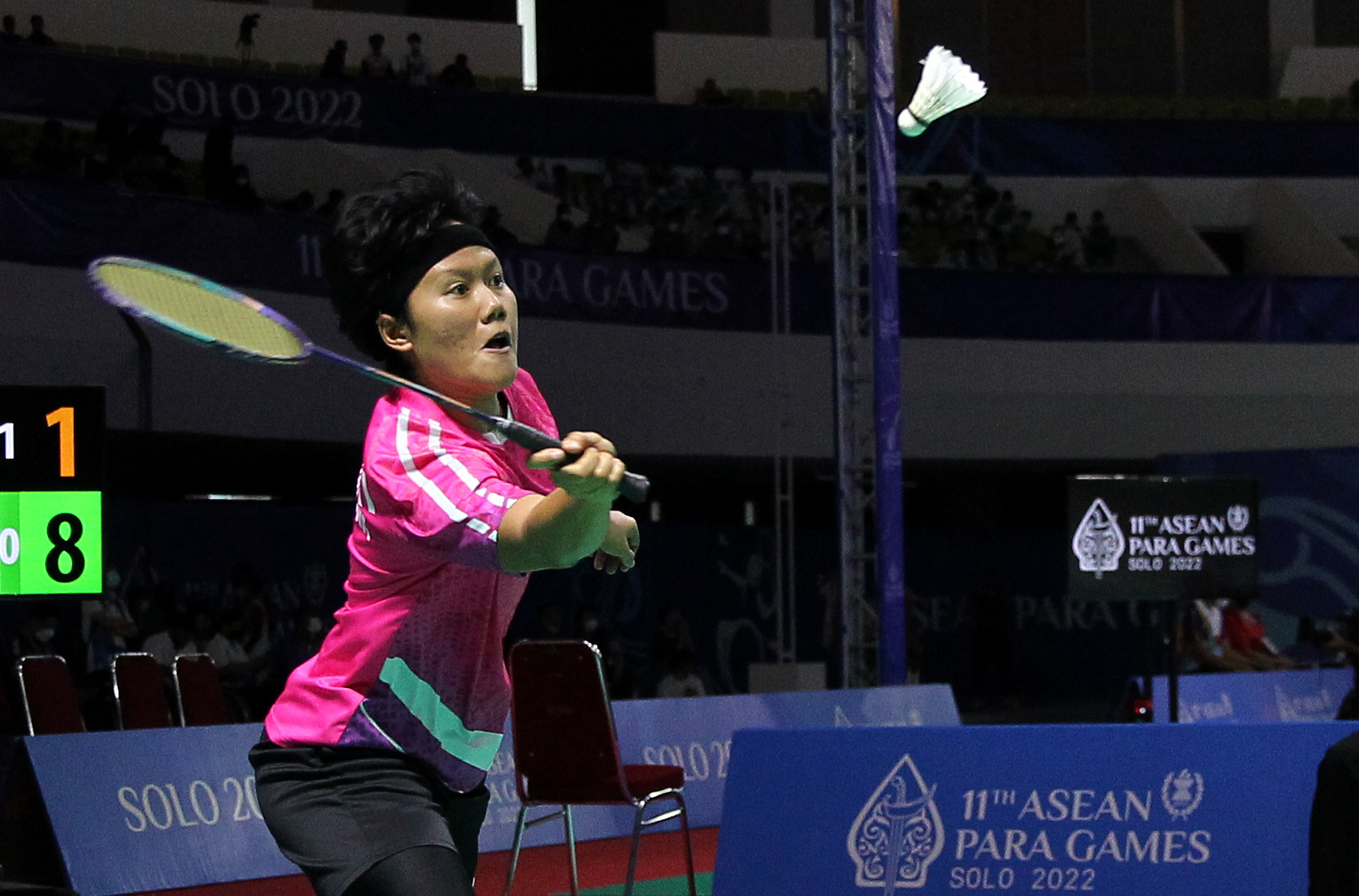 Pebulutangkis Indonesia Lia Priyanti dalam aksinya saat pertandingan di nomer Perseorangan Putri pada 11th ASEAN PARAGAMES 2022 di Auditorium Universitas Muhammadyah Surakarta, Solo, Jumat, 5/08/2022.Foto :HO/INASPOC/Sportsmoment/Ardy Alvez