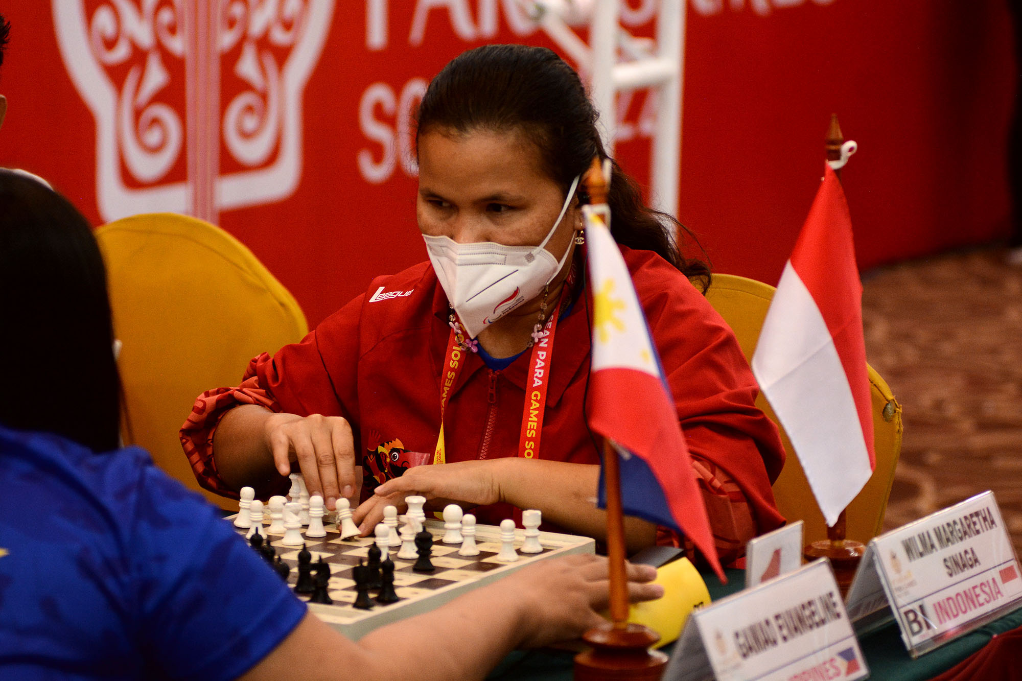 Emas Pecatur Indonesia Pecatur Putri Indonesia Wilma Margaretha Sinaga saat turun melawan Evangeline Gamao dari Philippines dalam nomor Women's Individual Blitz Chess B1, ASEAN Paragames 2022, di Hotel D'Wangsa, Sukoharjo, Jumat (5/8). Wilma Margaretha Sinaga berhasil menang dan mendapatkan Medali emas. Foto : HO/INASPOC/Sportsmoment/YTS
