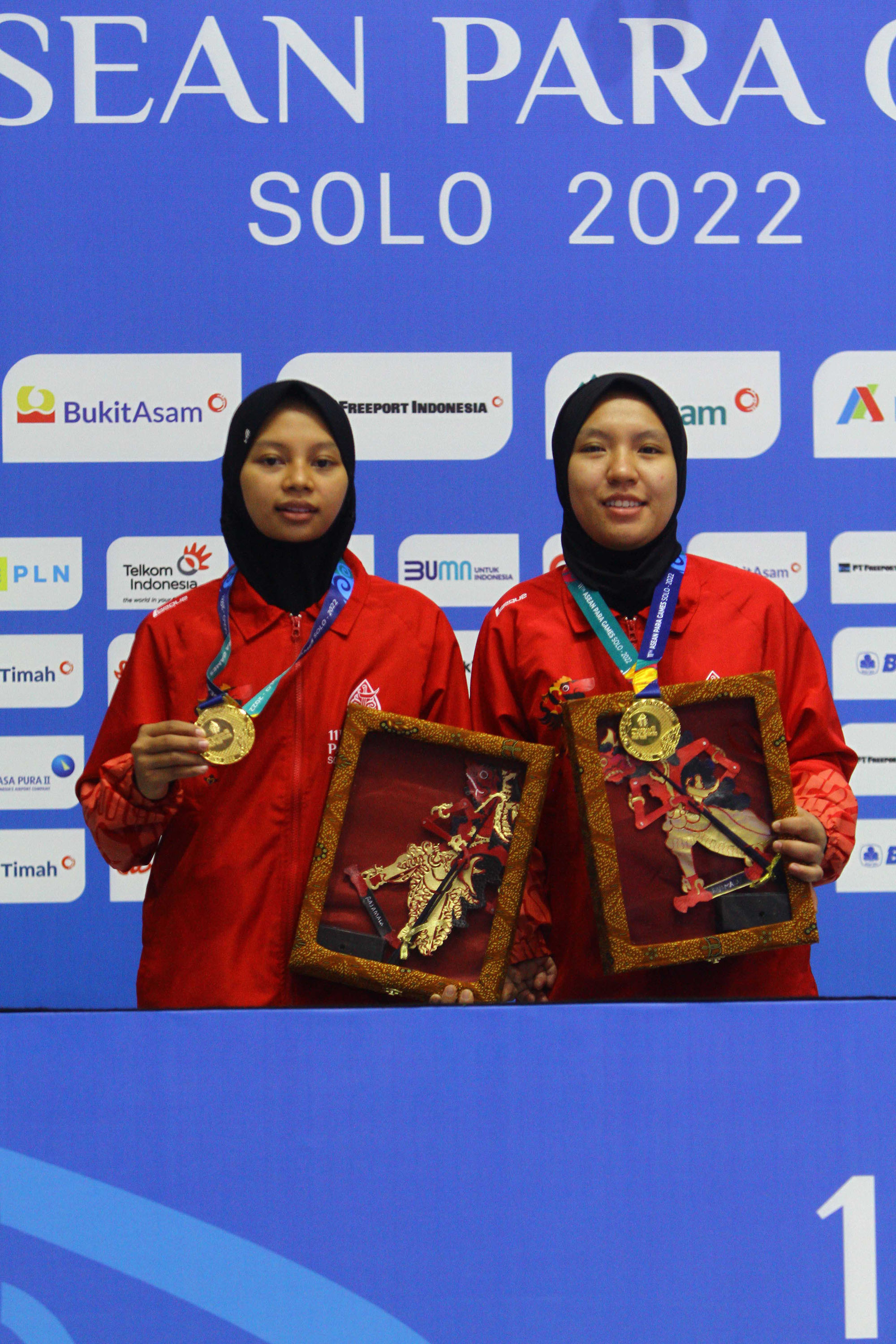 Pebulutangkis Indonesia Qonita Ikhtiar dan Warining Rahayu merebut emas di nomer Ganda Putri pada 11th ASEAN PARAGAMES 2022 di Auditorium Universitas Muhammadyah Surakarta, Solo, Jumat, 5/08/2022.Foto :HO/INASPOC/Sportsmoment/Ardy Alvez
