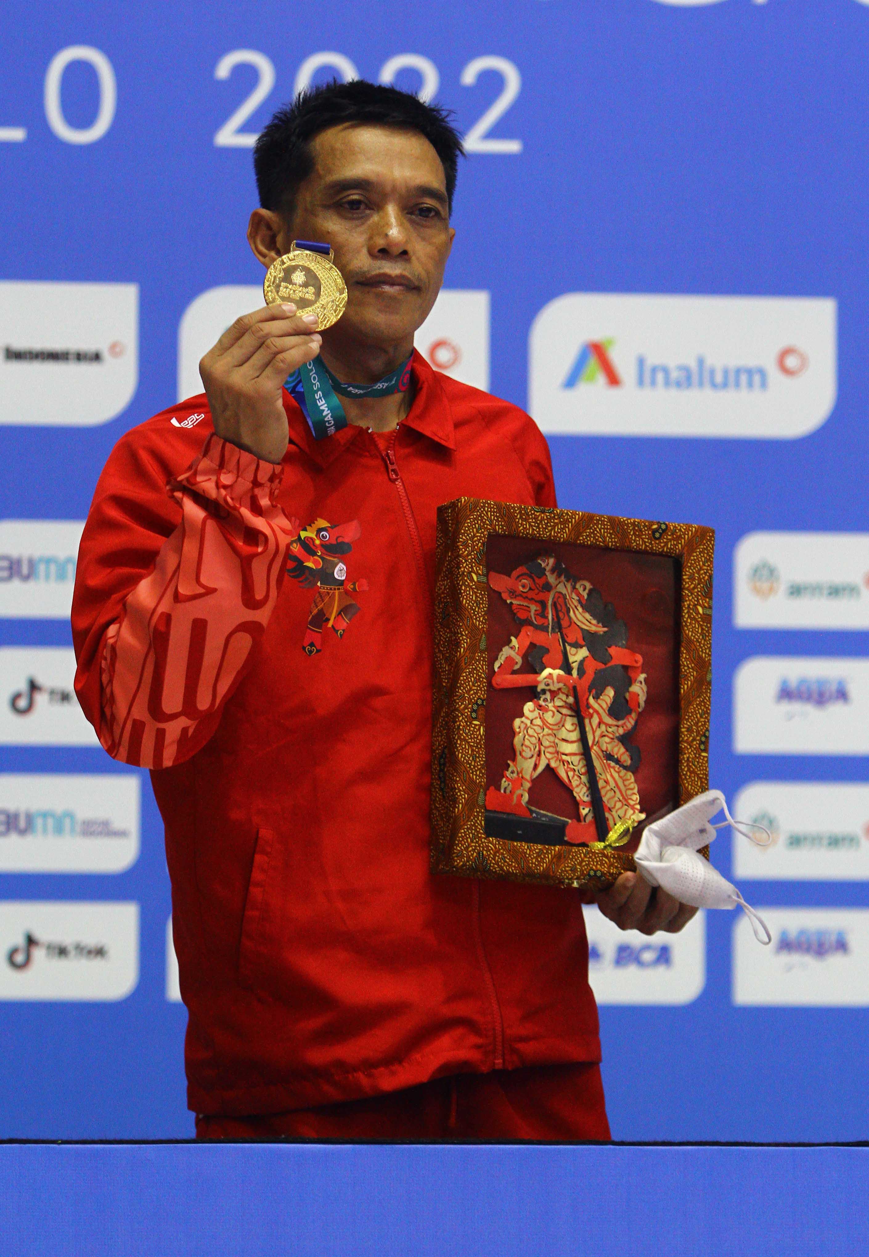 Pebulutangkis Indonesia Ukun Rukendi merebut emas di nomer Perseorangan pada 11th ASEAN PARAGAMES 2022 di Auditorium Universitas Muhammadyah Surakarta, Solo, Jumat, 5/08/2022.Foto :HO/INASPOC/Sportsmoment/Ardy Alvez