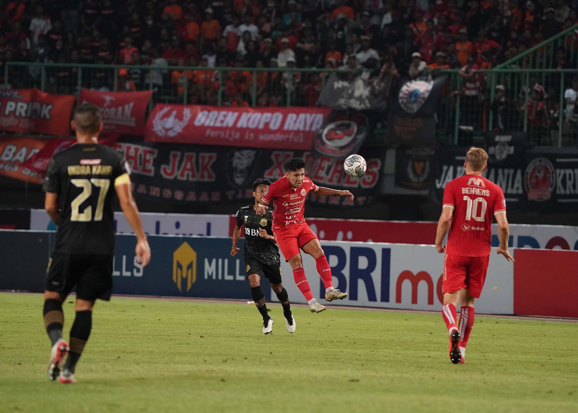 Pesepakbola asal klub Persija Jakarta, Syahrian Abimanyu (8) saat berlaga melawan Bhayangkara FC di Stadion Patriot Chandra Bhaga Bekasi, Sabtu (3/9). Persija unggu atas Bhayangkara FC dengan skor tipis 2-1. Kedua gol Persija Jakarta ke gawang Bhayangkara FC dicetak oleh Michael Krmencik. (Foto by : sportsmoment.id/Erly Bahtiar)