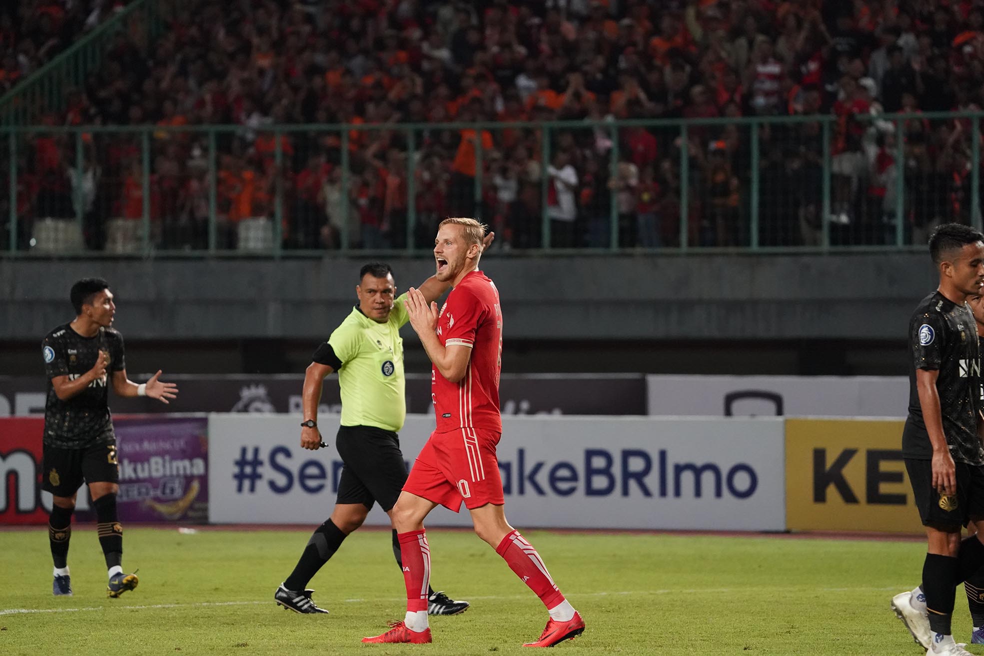 Pesepakbola asal klub Persija Jakarta, Hanno Behrens (10) saat berlaga melawan Bhayangkara FC di Stadion Patriot Chandra Bhaga Bekasi, Sabtu (3/9). Persija unggu atas Bhayangkara FC dengan skor tipis 2-1. Kedua gol Persija Jakarta ke gawang Bhayangkara FC dicetak oleh Michael Krmencik. (Foto by : sportsmoment.id/Erly Bahtiar)