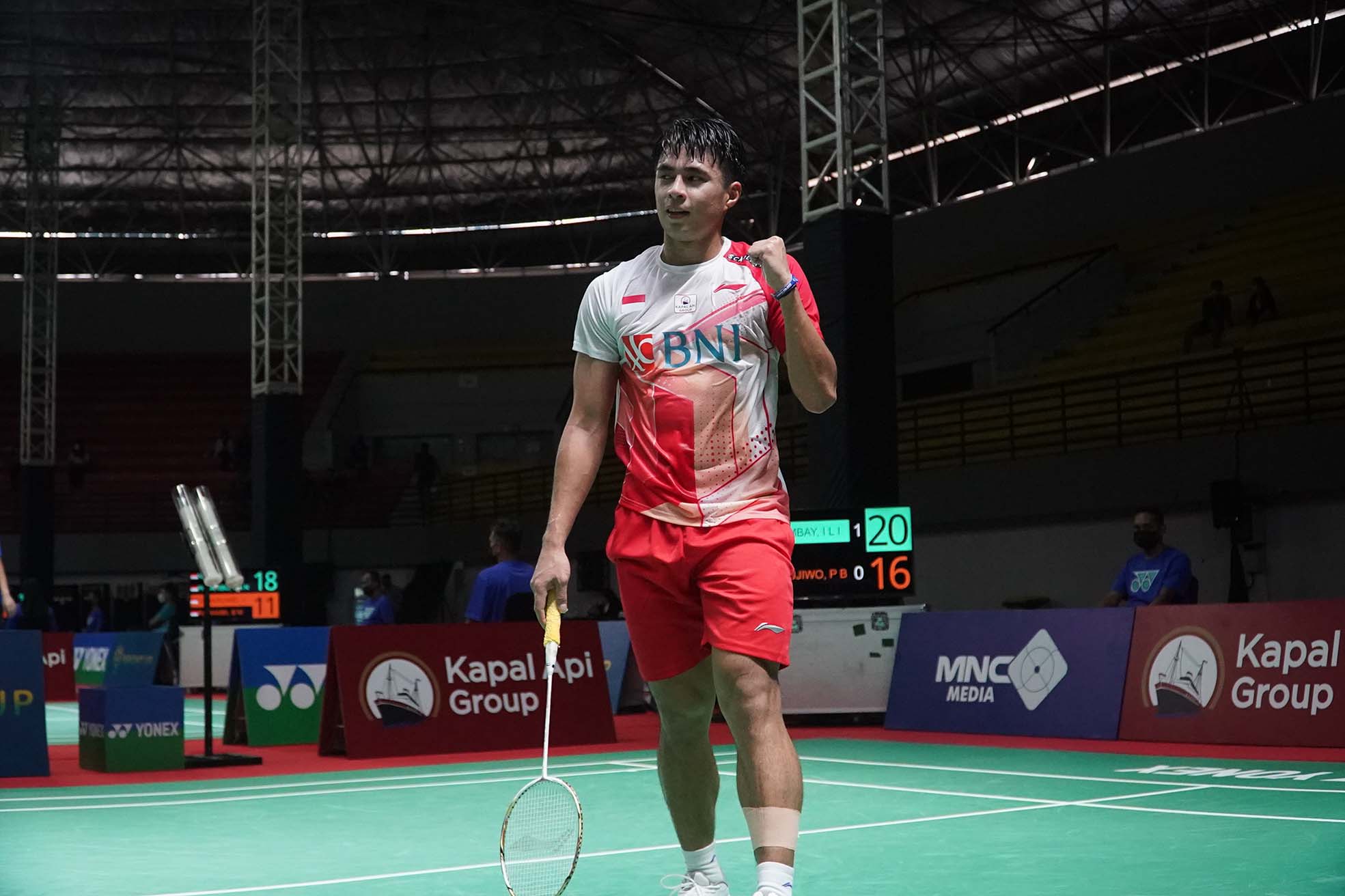Tunggal Putra Indonesia, Ikhsan Leonardo Imanuel Rumbay berhasil mengalahkan kompatriotnya, Prahdiska Bagas Shujiwo dua gim langsung, 21-13, 21-16 pada babak 16 besar gelaran Kapal Api Group Indonesia International Series 2022, Kamis (22/9), di Gor Amongrogo, Yogyakarta. (Foto by : sportsmoment.id/Erly Bahtiar)