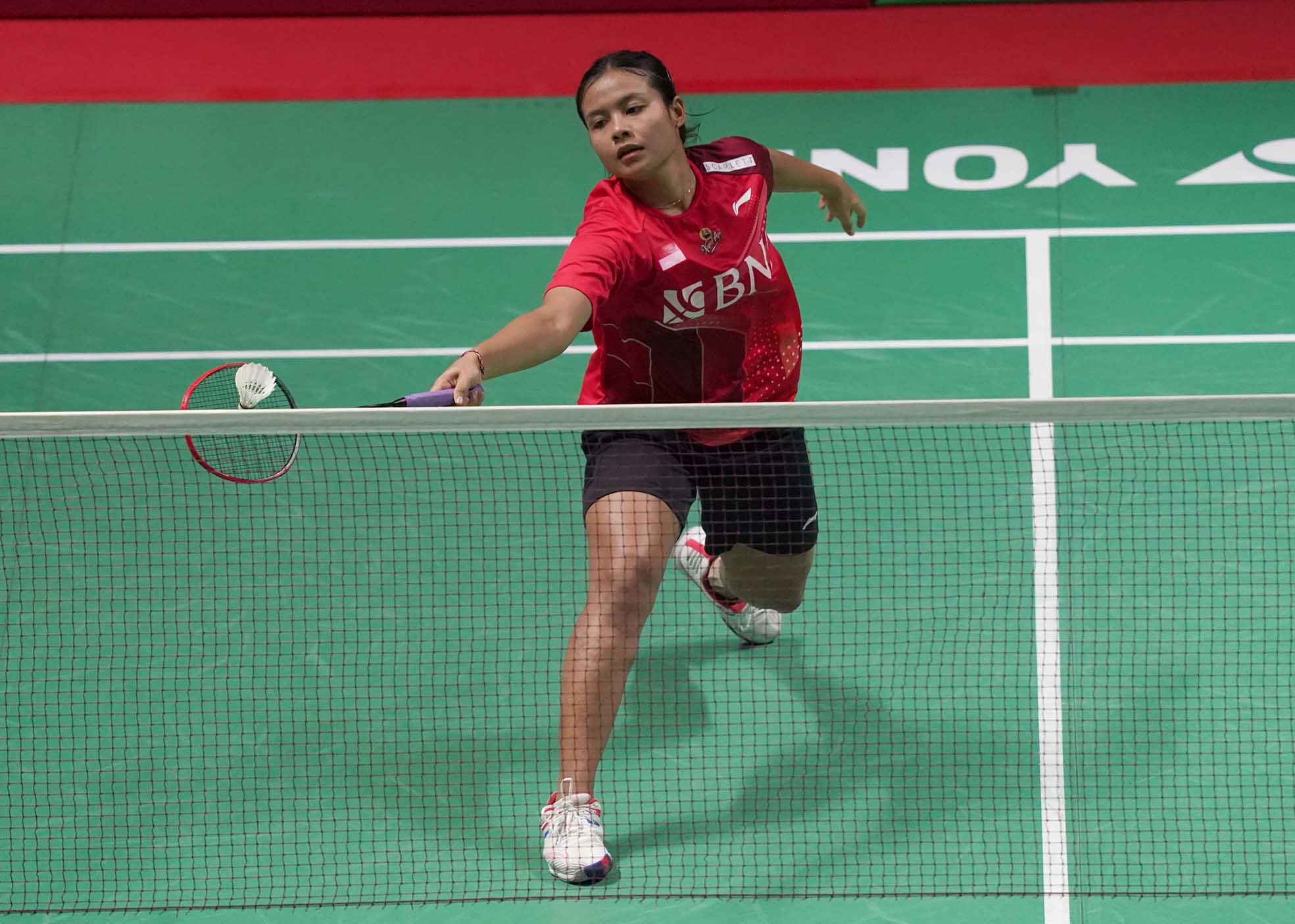 Tunggal Putri Indonesia, Komang Ayu Cahya Dewi berhasil mengalahkan kompatriotnya, Yasnita Enggira Setiawan dua gim langsung, 21-7, 21-19 pada babak 16 besar gelaran Kapal Api Group Indonesia International Series 2022, Kamis (22/9), di Gor Amongrogo, Yogyakarta. (Foto by : sportsmoment.id/Erly Bahtiar)