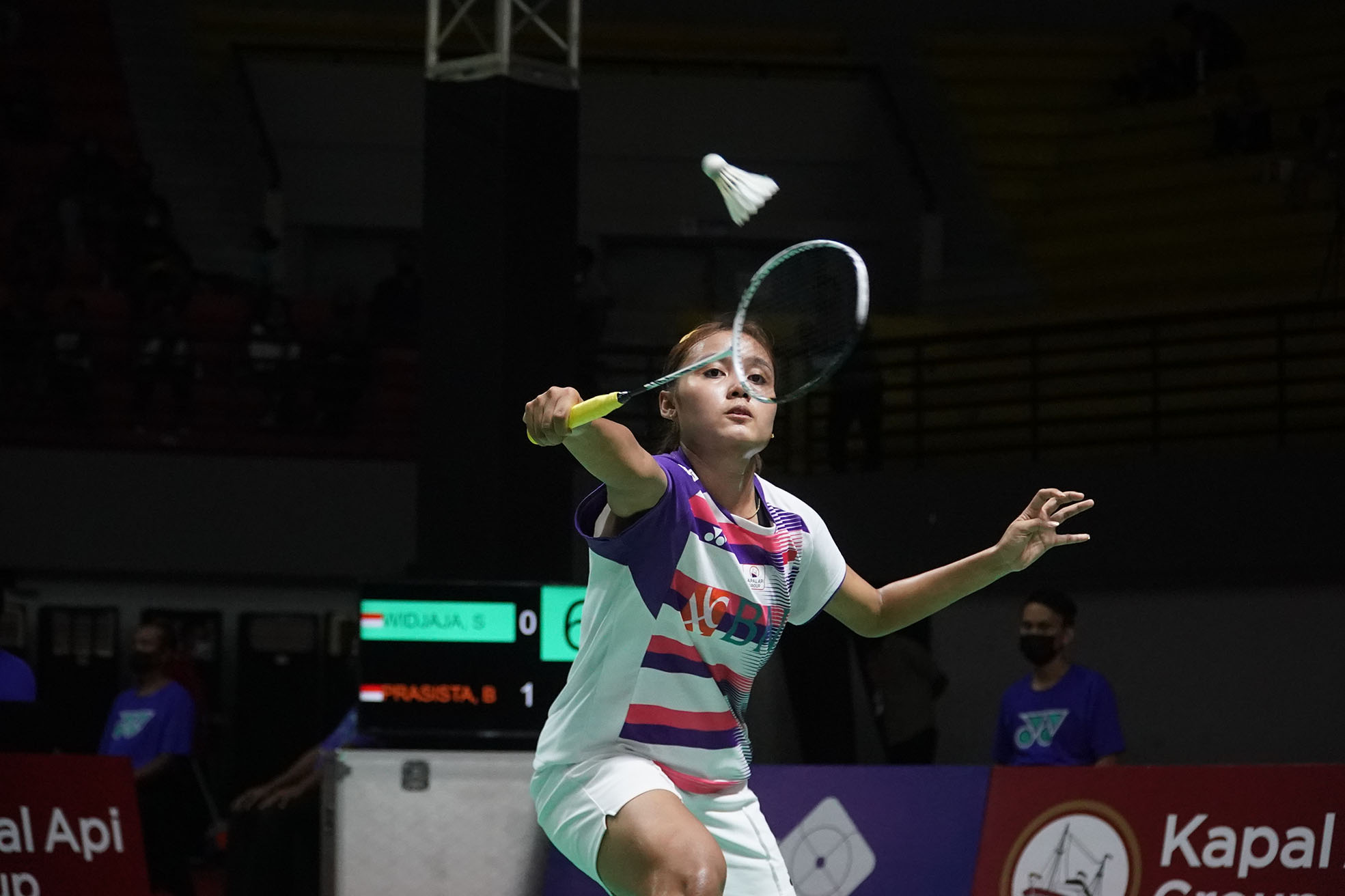 Tunggal Putri Indonesia, Bilqis Prasista dikalahkan kompatriotnya, Stephanie Widjaja melalui pertarungan tiga gim, 21-17, 6-21 dan 17-21 pada babak 16 besar gelaran Kapal Api Group Indonesia International Series 2022, Kamis (22/9), di Gor Amongrogo, Yogyakarta. (Foto by : sportsmoment.id/Erly Bahtiar)
