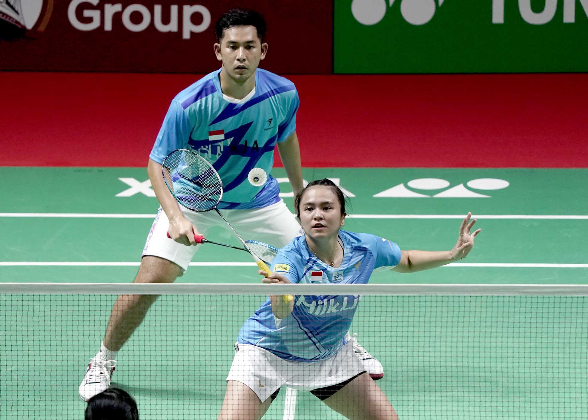 Ganda campuran Indonesia, M. Reza Pahlevi Isfahani/Melati Daeva Oktavianti berhasil mengalahkan kompatriotnya, Akbar Bintang Cahyono/Marsheilla Gischa Islami melalui pertarungan tiga gim, 21-12, 19-21 dan 21-11 pada babak semifinal gelaran Kapal Api Group Indonesia International Series 2022, Sabtu (24/9), di Gor Amongrogo, Yogyakarta. (Foto by : sportsmoment.id/Erly Bahtiar)