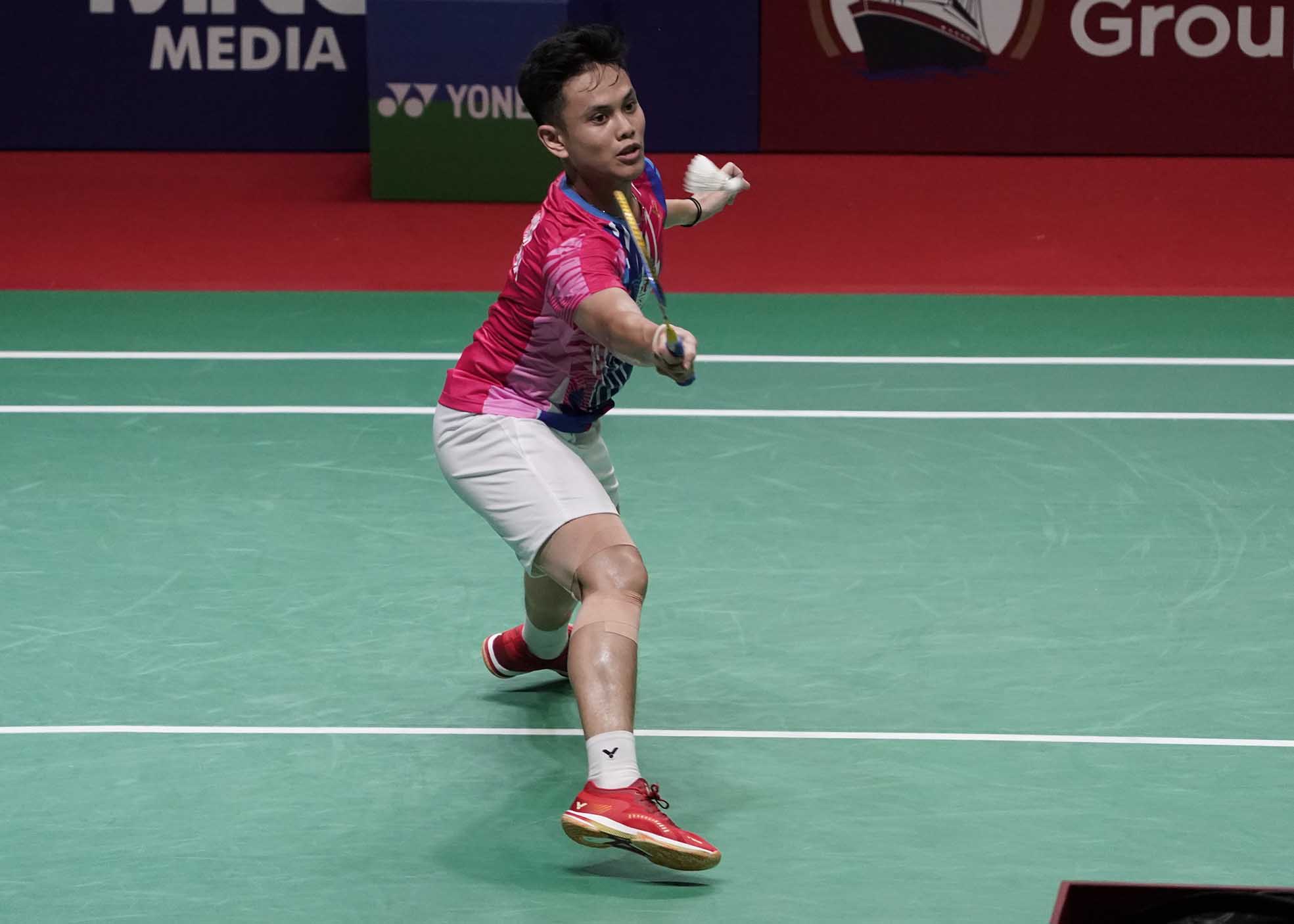 Tunggal Putra Indonesia, Iqbal Diaz Syahputra berhasil mengalahkan kompatriotnya, Panji Ahmad Maulana dua gim langsung, 21-17, 21-18 pada babak semifinal gelaran Kapal Api Group Indonesia International Series 2022, Sabtu (24/9), di Gor Amongrogo, Yogyakarta. (Foto by : sportsmoment.id/Erly Bahtiar)