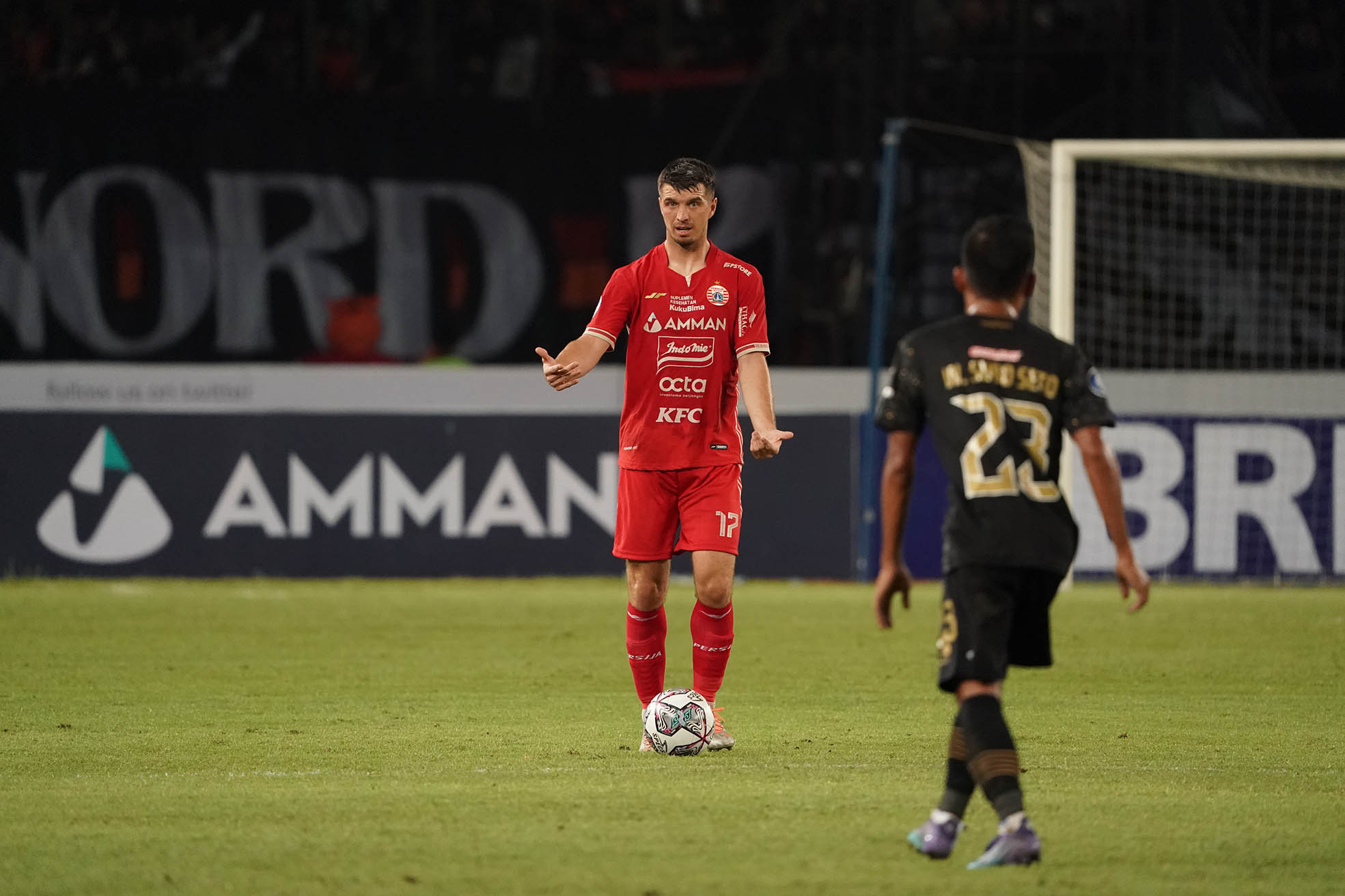 Pesepakbola asal klub Persija Jakarta, Ondrej Kudela (17) saat berlaga melawan Bhayangkara FC di Stadion Patriot Chandra Bhaga Bekasi, Sabtu (3/9). Persija unggu atas Bhayangkara FC dengan skor tipis 2-1. Kedua gol Persija Jakarta ke gawang Bhayangkara FC dicetak oleh Michael Krmencik. (Foto by : sportsmoment.id/Erly Bahtiar)