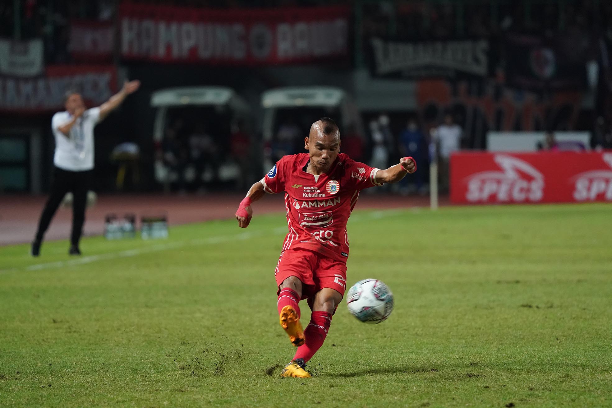Pesepakbola asal klub Persija Jakarta, Riko Simanjuntak (25) saat berlaga melawan Bhayangkara FC di Stadion Patriot Chandra Bhaga Bekasi, Sabtu (3/9). Persija unggu atas Bhayangkara FC dengan skor tipis 2-1. Kedua gol Persija Jakarta ke gawang Bhayangkara FC dicetak oleh Michael Krmencik. (Foto by : sportsmoment.id/Erly Bahtiar)