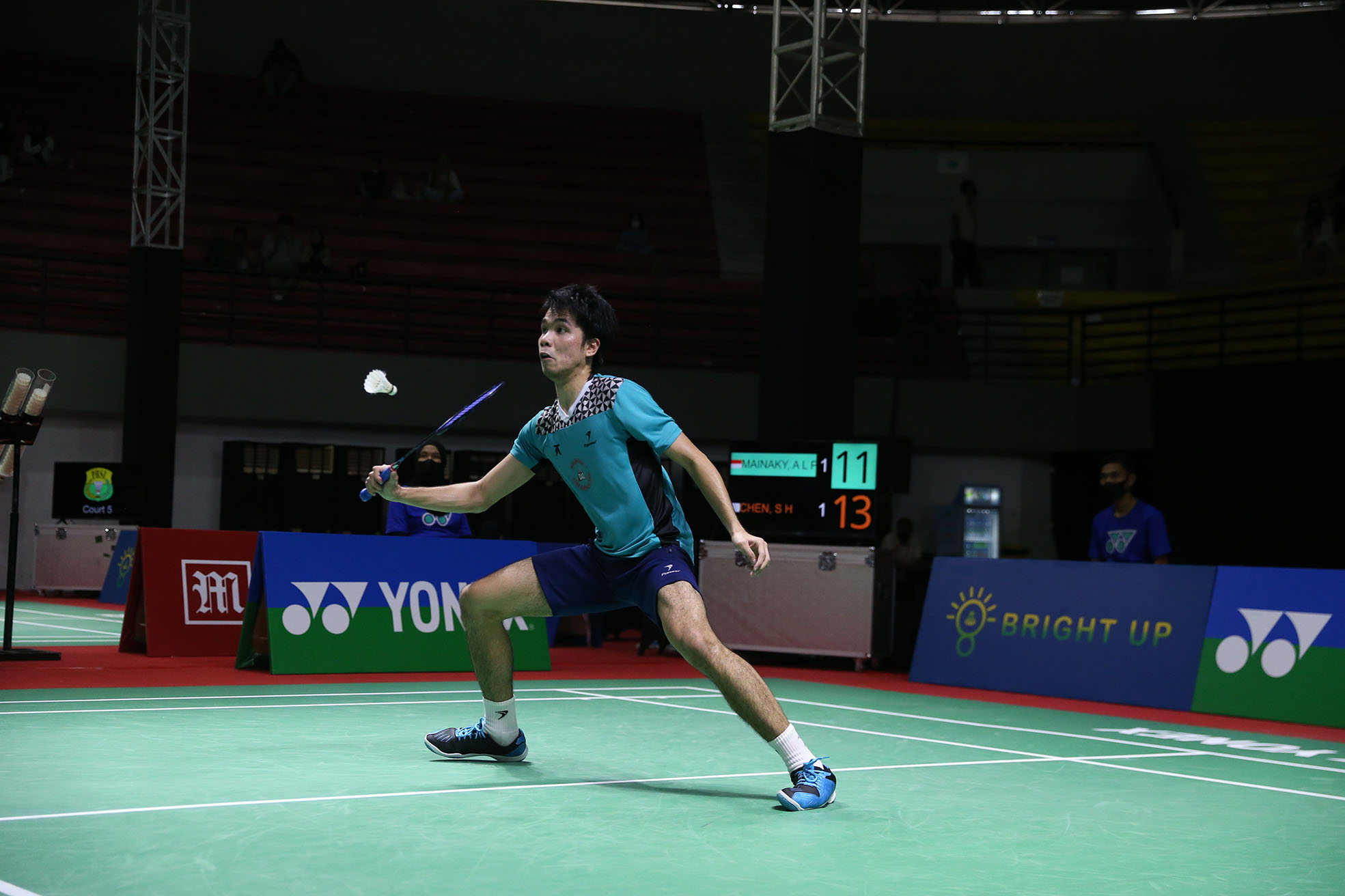 Tunggal Putra Indonesia, Alden Lefilson Putra Mainaky dikalahkan tunggal putra Chinese Taipei, CHEN Shao-Hsuan melalui pertarungan tiga gim, 13-21, 21-19 dan 21-23 pada babak 64 besar gelaran Mansion Sport Indonesia International Challenge 2022, Selasa (27/9), di Gor Amongrogo, Yogyakarta. (Foto by : sportsmoment.id/Erly Bahtiar)