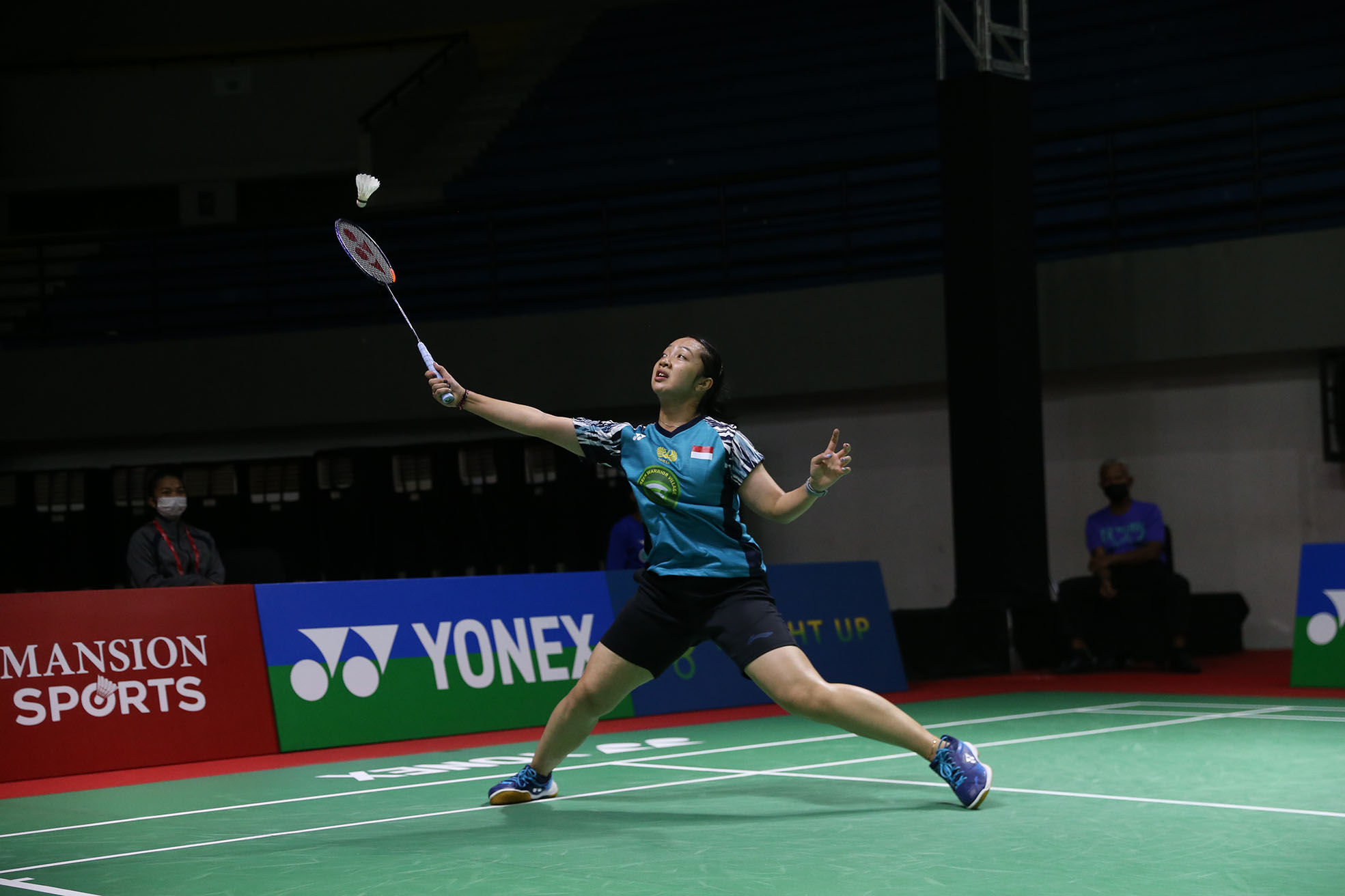 Tunggal Putri Indonesia, Made Dinda Widiasari dikalahkan kompatriotnya, Lyanny Alessandra MAINAKY dua gim langsung, 10-21, 11-21 pada babak 32 besar gelaran Mansion Sport Indonesia International Challenge 2022, Selasa (27/9), di Gor Amongrogo, Yogyakarta. (Foto by : sportsmoment.id/Erly Bahtiar)