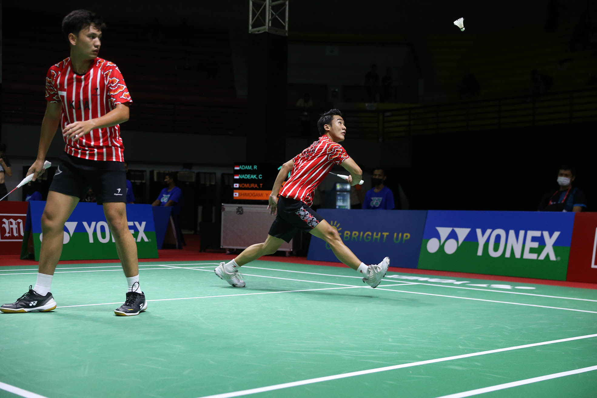 Ganda Putra Indonesia, Rizki Adam/Colombus Nadeak dikalahkan ganda putra Jepang, Takumi NOMURA/Yuichi SHIMOGAMI melalui pertarungan tiga gim, 11-21, 22-20 dan 12-21 pada babak 32 besar gelaran Mansion Sport Indonesia International Challenge 2022, Selasa (27/9), di Gor Amongrogo, Yogyakarta. (Foto by : sportsmoment.id/Erly Bahtiar) ,