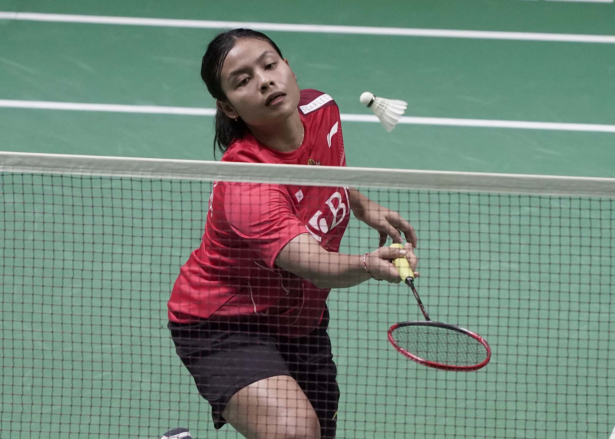 Tunggal Putri Indonesia, Komang Ayu Cahya Dewi berhasil mengalahkan kompatriotnya, Siti Sarah AZZAHRA melalui pertarungan tiga gim, 18-21, 21-14 dan 21-14 pada babak semifinal gelaran Mansion Sport Indonesia International Challenge 2022, Sabtu (1/10), di Gor Amongrogo, Yogyakarta. (Foto by : sportsmoment.id/Erly Bahtiar)