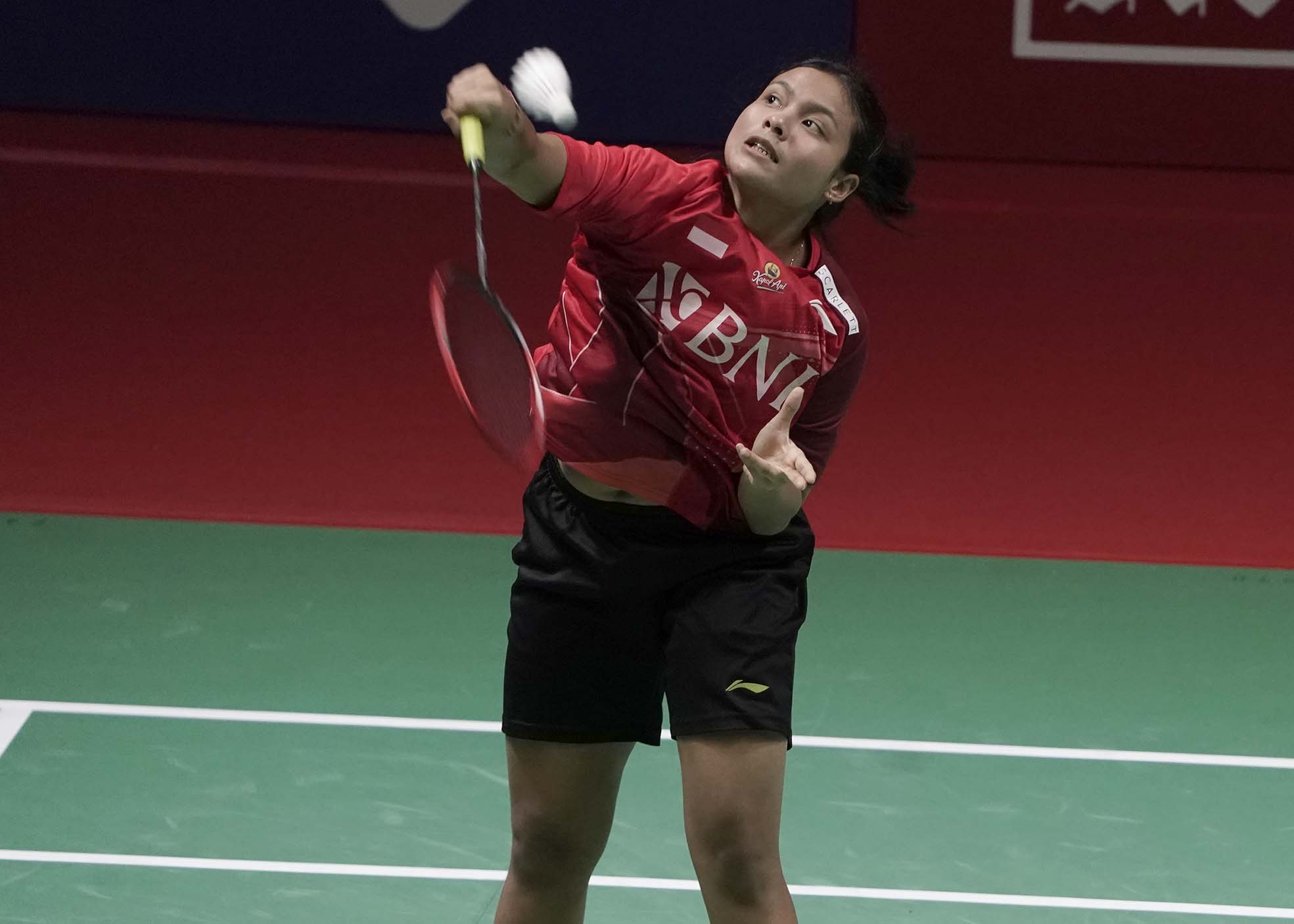 Tunggal Putri Indonesia, Komang Ayu Cahya Dewi berhasil mengalahkan kompatriotnya, Siti Sarah AZZAHRA melalui pertarungan tiga gim, 18-21, 21-14 dan 21-14 pada babak semifinal gelaran Mansion Sport Indonesia International Challenge 2022, Sabtu (1/10), di Gor Amongrogo, Yogyakarta. (Foto by : sportsmoment.id/Erly Bahtiar)