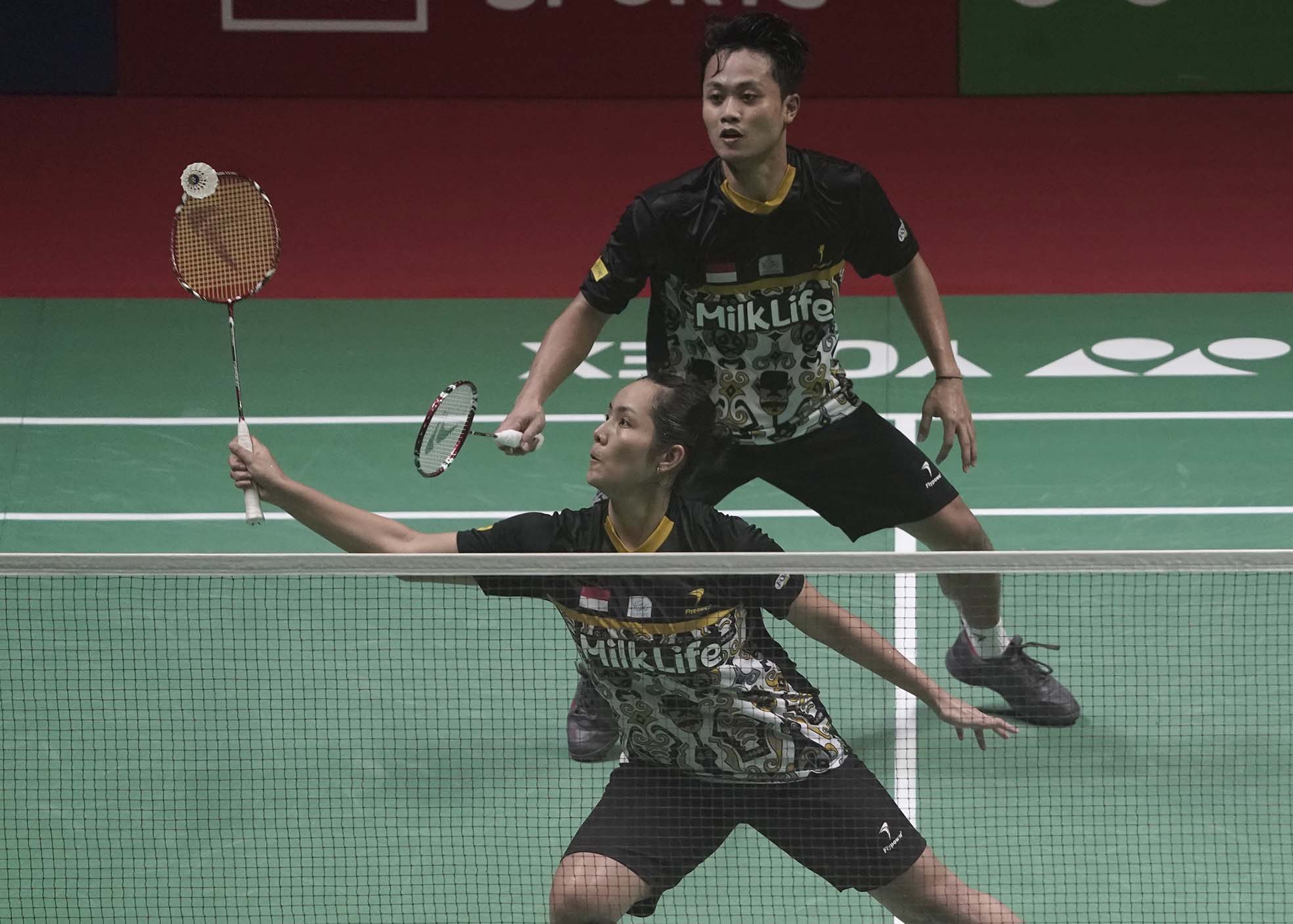 Ganda campuran Indonesia, Akbar Bintang Cahyono/Marsheilla Gischa Islami berhasil mengalahkan kompatriotnya, Jafar HIDAYATULLAH/Aisyah Salsabila Putri PRANATA dua gim langsung, 21-17, 23-21 pada babak semifinal gelaran Mansion Sport Indonesia International Challenge 2022, Sabtu (1/10), di Gor Amongrogo, Yogyakarta. (Foto by : sportsmoment.id/Erly Bahtiar)