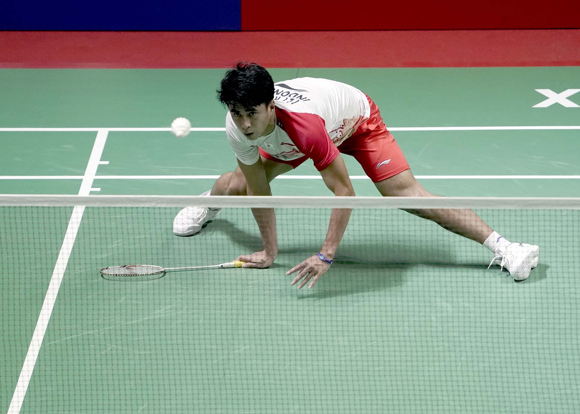 Tunggal Putra Indonesia, Ikhsan Leonardo Imanuel Rumbay dikalahkan tunggal putra Chinese Taipei, LIN Kuan-Ting melalui pertarungan tiga gim, 23-21, 18-21 dan 22-24 pada babak semifinal gelaran Mansion Sport Indonesia International Challenge 2022, Sabtu (1/10), di Gor Amongrogo, Yogyakarta. (Foto by : sportsmoment.id/Erly Bahtiar)