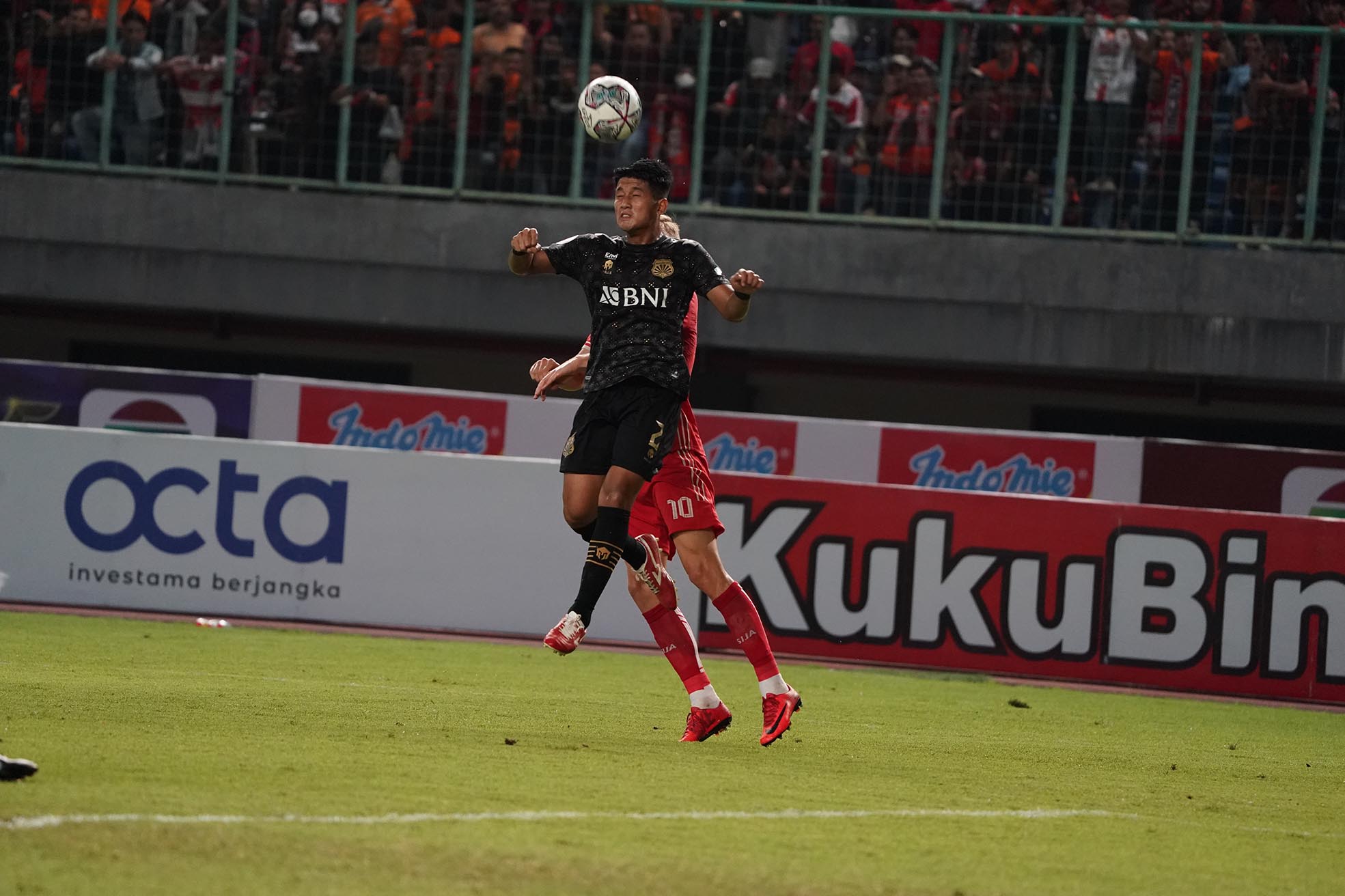 Pesepakbola asal klub Bhayangkara FC, I Putu Gede Juniantara (2) saat berlaga melawan Persija Jakarta di Stadion Patriot Chandra Bhaga Bekasi, Sabtu (3/9). Bhayangkara FC takluk dari Persija Jakarta dengan skor tipis 1-2. Kedua gol Persija Jakarta ke gawang Bhayangkara FC dicetak oleh Michael Krmencik. (Foto by : sportsmoment.id/Erly Bahtiar)