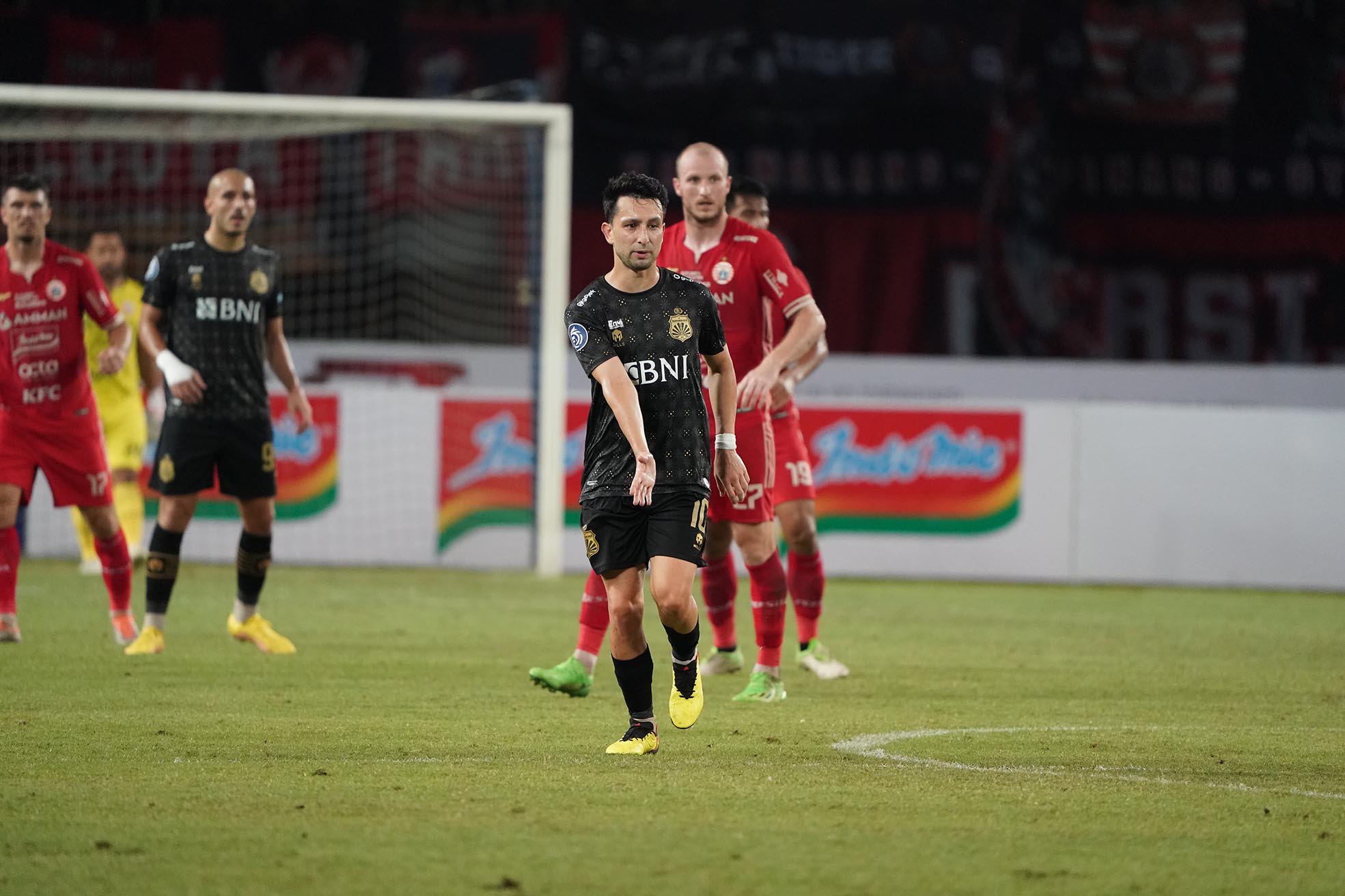 Pesepakbola asal klub Bhayangkara FC, Adam Ahmad Najem (10) saat berlaga melawan Persija Jakarta di Stadion Patriot Chandra Bhaga Bekasi, Sabtu (3/9). Bhayangkara FC takluk dari Persija Jakarta dengan skor tipis 1-2. Kedua gol Persija Jakarta ke gawang Bhayangkara FC dicetak oleh Michael Krmencik. (Foto by : sportsmoment.id/Erly Bahtiar)