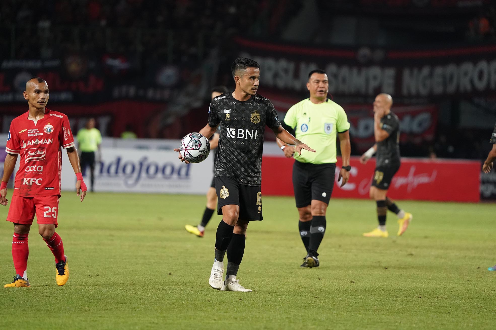 Pesepakbola asal klub Bhayangkara FC, Finky Pasamba (16) saat berlaga melawan Persija Jakarta di Stadion Patriot Chandra Bhaga Bekasi, Sabtu (3/9). Bhayangkara FC takluk dari Persija Jakarta dengan skor tipis 1-2. Kedua gol Persija Jakarta ke gawang Bhayangkara FC dicetak oleh Michael Krmencik. (Foto by : sportsmoment.id/Erly Bahtiar)