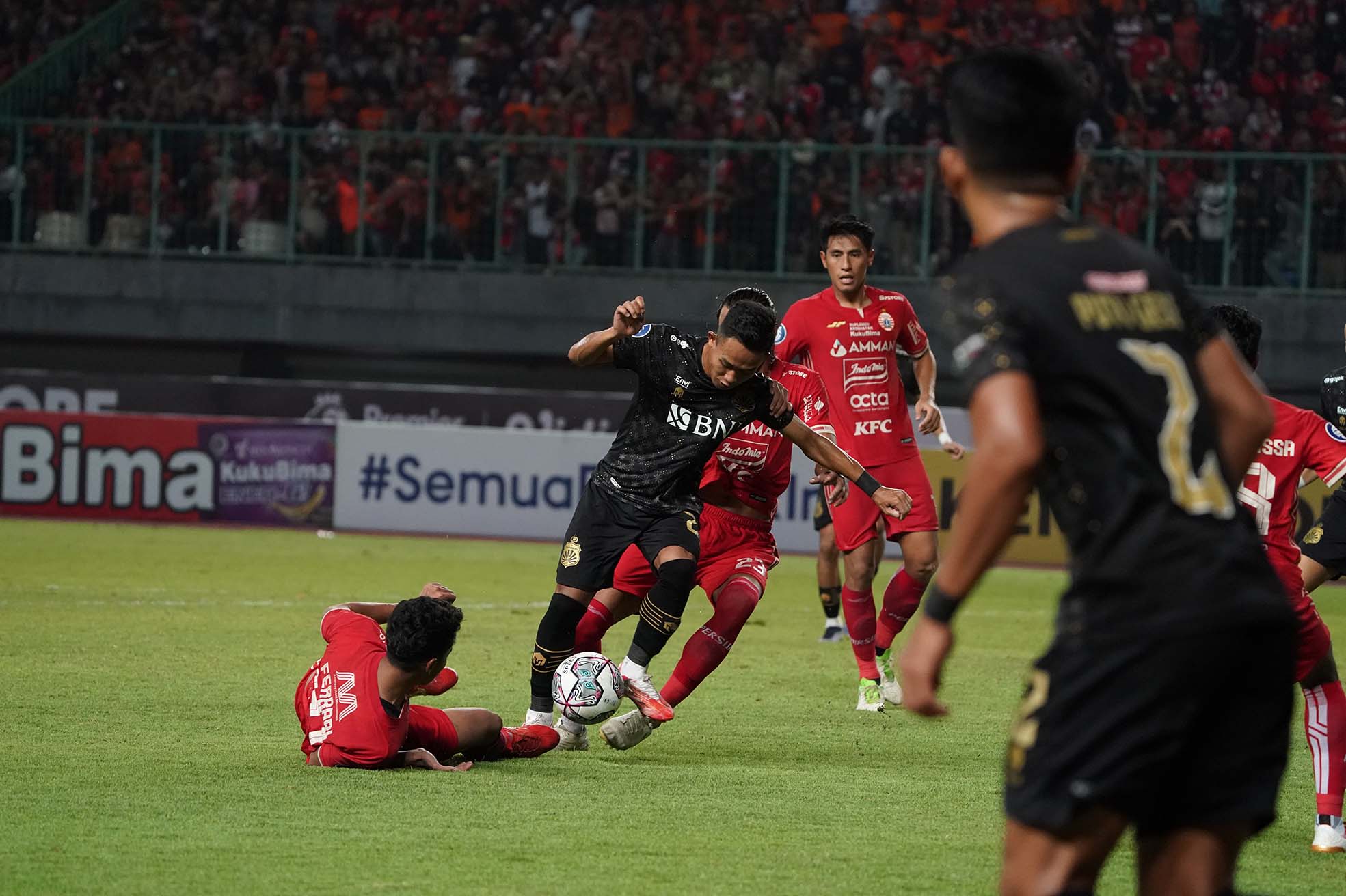 Pesepakbola asal klub Bhayangkara FC, Sani Rizky Fauzi (20) saat berlaga melawan Persija Jakarta di Stadion Patriot Chandra Bhaga Bekasi, Sabtu (3/9). Bhayangkara FC takluk dari Persija Jakarta dengan skor tipis 1-2. Kedua gol Persija Jakarta ke gawang Bhayangkara FC dicetak oleh Michael Krmencik. (Foto by : sportsmoment.id/Erly Bahtiar)