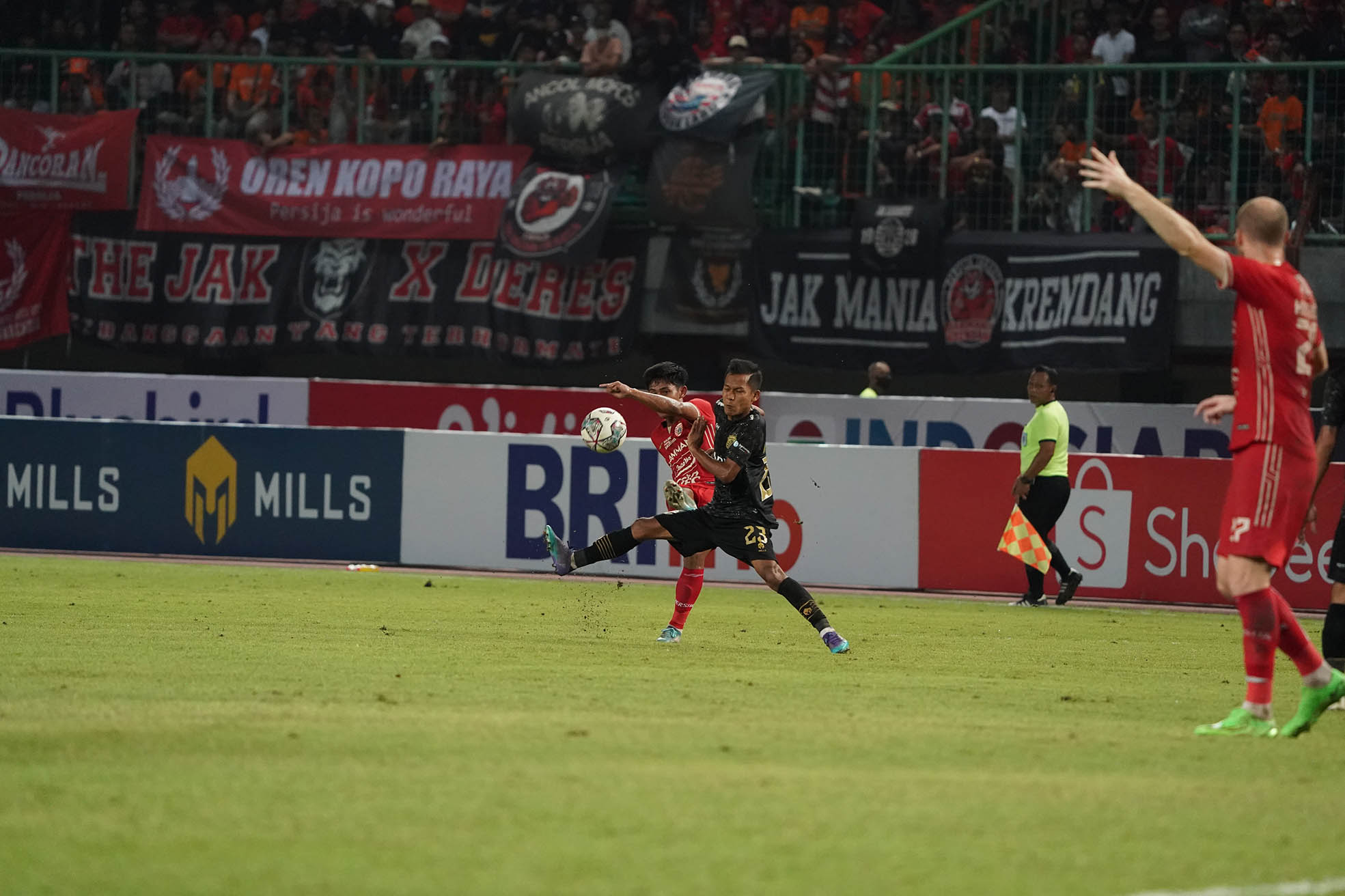 Pesepakbola asal klub Bhayangkara FC, Wahyu Subo Seto (23) saat berlaga melawan Persija Jakarta di Stadion Patriot Chandra Bhaga Bekasi, Sabtu (3/9). Bhayangkara FC takluk dari Persija Jakarta dengan skor tipis 1-2. Kedua gol Persija Jakarta ke gawang Bhayangkara FC dicetak oleh Michael Krmencik. (Foto by : sportsmoment.id/Erly Bahtiar)